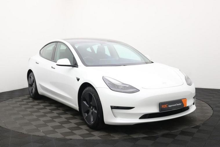 Henson Car Store presents the TESLA Model 3 (Dual Motor) Long Range Saloon 4dr Electric Auto 4WDE finished in White. This 2021 Tesla Model 3 Long Range Dual Motor offers a perfect blend of cutting-edge electric performance, modern styling, and everyday practicality. Designed to meet UK specifications, this sleek four-door saloon features Teslas advanced dual motor all-wheel-drive system, delivering confident traction and rapid acceleration in all conditions. With a 060 mph time of just 4.2 seconds and a WLTP range of over 360 miles, it combines efficiency with true electric power. The minimalist interior is centred around a 15-inch touchscreen that controls everything from navigation to climate, media, and vehicle settings. High-quality materials, heated front and rear seats, a premium audio system, and a panoramic glass roof create a spacious and comfortable cabin environment. Teslas Autopilot system is included, offering lane-keeping assistance, adaptive cruise control, and advanced safety features to make every journey more relaxed. As with all Teslas, this Model 3 benefits from over-the-air software updates, keeping the vehicle constantly improving with new features and refinements. With its whisper-quiet electric drive, smart technology, and strong performance, this Model 3 Long Range is ideal for both commuting and longer road tripsoffering a sustainable and thoroughly modern driving experience.