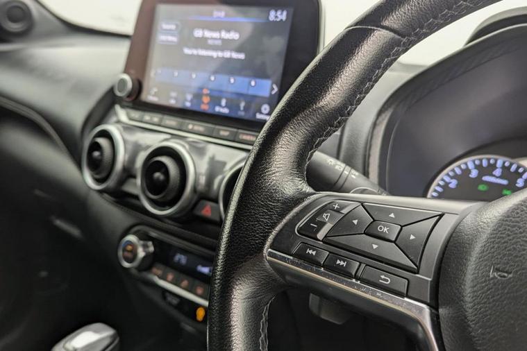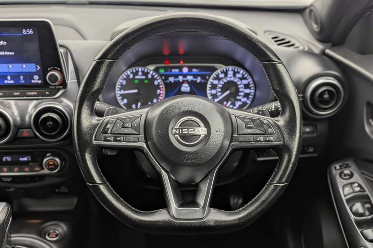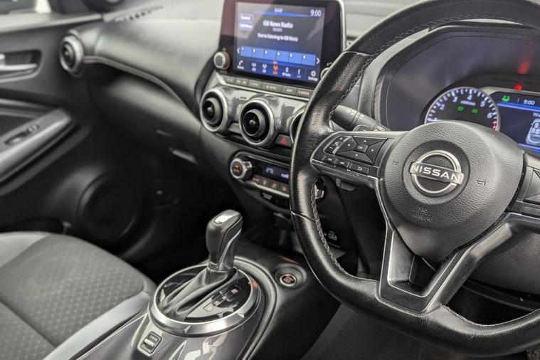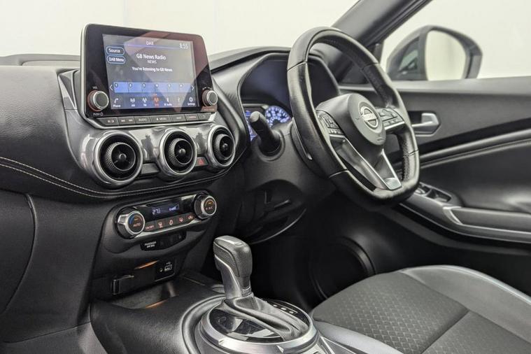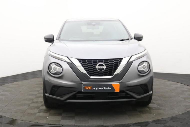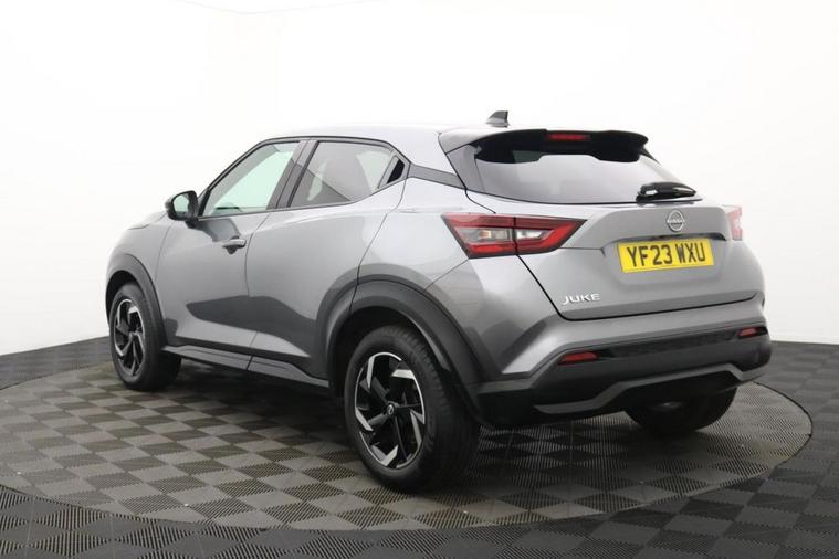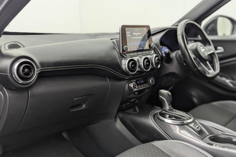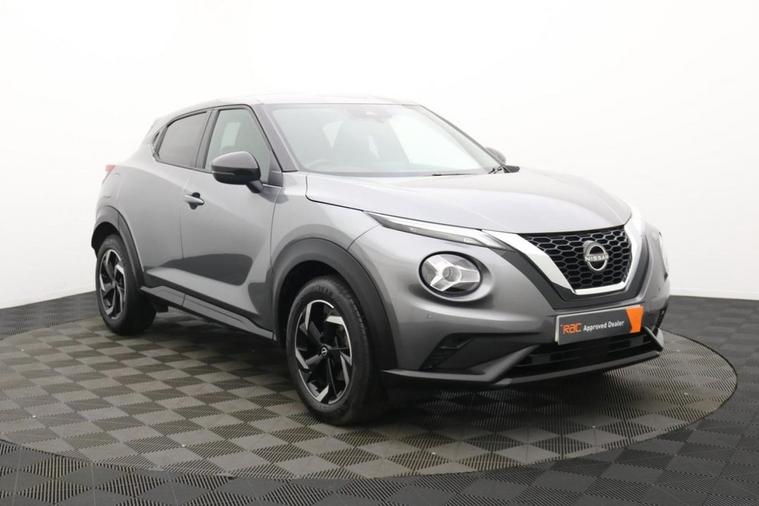 Henson Car Store presents the NISSAN JUKE 1.0 DIG-T N-Connecta SUV 5dr Petrol DCT Auto Euro 6 (s/s) finished in Grey, this car comes with service history. This 2023 Nissan Juke 1.0 DIG-T N-Connecta blends distinctive design, advanced technology, and smooth automatic performance to create a compact SUV that stands out on every level. Powered by a responsive 1.0-litre turbocharged petrol engine paired with a slick DCT automatic gearbox, this Euro 6 compliant model delivers a refined and efficient drive, whether youre navigating city streets or cruising on the motorway. Finished in the popular N-Connecta trim, this Juke is packed with modern features including an 8-inch touchscreen infotainment system with satellite navigation, Apple CarPlay and Android Auto, DAB radio, and a reversing camera. The interior offers a comfortable and contemporary space with premium materials, ambient lighting, and clever storage throughout. Bold exterior styling, sharp LED headlights, and striking alloy wheels give the Juke a confident and sporty presence on the road. Practicality is also a strong point, with a versatile boot space, five-door accessibility, and a raised driving position for improved visibility. With its eye-catching looks, intelligent features, and smooth automatic transmission, the 2023 Nissan Juke N-Connecta is a compact SUV built for modern drivingoffering comfort, style, and performance in one well-rounded package.