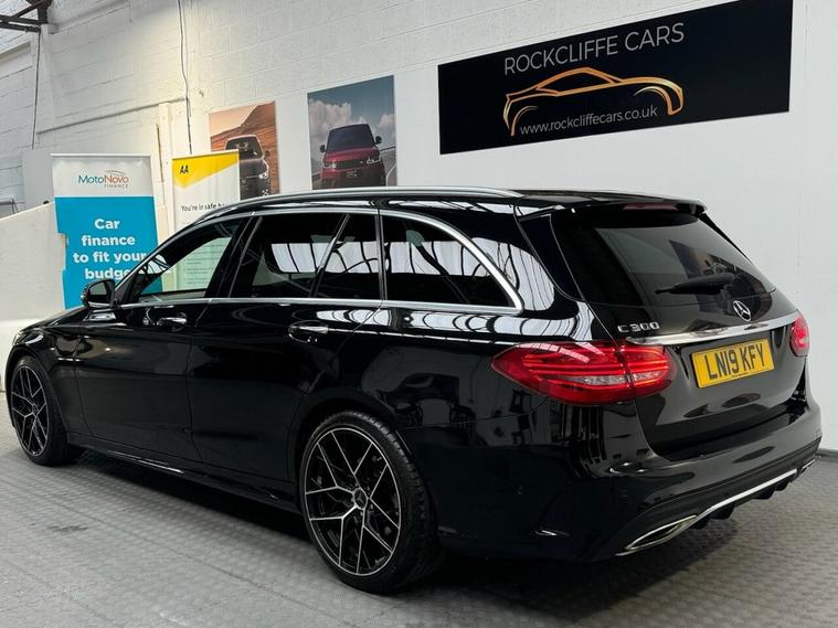 ROCKCLIFFE CARS PRESENTS THIS STUNNING MERCEDES-BENZ C-CLASS 2.0 C300 AMG LINE (PREMIUM PLUS) ESTATE Registration: LN19 KFY | Mileage: 75, 000 miles | Transmission: G-Tronic+ Automatic | Fuel Type: Petrol | Power: 258 PS | Euro 6 Compliant Finished in glossy Obsidian Black metallic, this Mercedes-Benz C300 AMG Line Premium Plus Estate offers the perfect blend of performance, comfort, and sophistication. A beautifully presented example with only 75, 000 miles, this C-Class combines dynamic styling with the practicality of an estate and the luxurious features youd expect from Mercedes-Benzs Premium Plus specification. EXTERIOR & STYLING This car has a commanding road presence thanks to its AMG Line body styling, diamond grille, and 18-inch AMG twin-spoke alloy wheels. The LED Intelligent Headlights with adaptive high beam assist, AMG front and rear bumpers, and chrome exterior trim complete the elegant yet sporty look. The black paintwork gleams beautifully and perfectly complements the premium design of this C-Class Estate. INTERIOR & COMFORT Step inside to discover luxury at its finest. The cabin features full black leather upholstery, heated front sports seats, and ambient interior lighting for that perfect mood. The Premium Plus pack brings a wealth of high-end features including the Burmester surround sound system, keyless entry and start, electric memory seats, panoramic glass sunroof, and COMAND Online multimedia system with satellite navigation and touchpad control. The dual-zone climate control, electric tailgate, and multifunction flat-bottom AMG steering wheel ensure every drive is both comfortable and enjoyable, while the large digital instrument cluster and 10.25-inch central display make every detail crystal clear. PERFORMANCE & HANDLING Powered by the impressive 2.0-litre petrol engine producing 258 PS, paired with the smooth G-Tronic+ 9-speed automatic gearbox, the C300 offers a refined yet sporty drive. Acceleration is brisk and effortless, while Dynamic Select drive modes allow you to tailor performance to your mood from comfort to sport. The ride is composed, quiet, and refined, making this the ideal car for both city driving and long-distance cruising. FEATURES & EQUIPMENT Premium Plus Pack 18 AMG Alloy Wheels Panoramic Glass Sunroof Full Leather Interior Heated Front Seats with Memory Function Burmester Surround Sound Audio Satellite Navigation (COMAND Online) Front and Rear Parking Sensors with Reverse Camera LED Intelligent Lighting System Ambient Interior Lighting Cruise Control & Speed Limiter Keyless Entry & Start Power Tailgate Dual-Zone Climate Control DAB Digital Radio, Bluetooth & USB Connectivity Electric Folding Mirrors SAFETY & TECHNOLOGY This C-Class is equipped with a full suite of Mercedes-Benz safety features including: Collision Prevention Assist Attention Assist (Driver Alert) Active Parking Assist Multiple Airbags Electronic Stability Control ABS with Brake Assist SUMMARY A truly premium example of the Mercedes-Benz C-Class Estate offering sporty performance, exceptional comfort, and a wealth of luxury features. With its eye-catching AMG styling, Premium Plus specification, and excellent condition throughout, this C300 is ready to impress its next owner. Available now at Rockcliffe Cars Call us today on 01642906939 to arrange a viewing or test drive. Find us at: Rockcliffe Cars, Master Rd, Thornaby, TS17 0BE Part Exchange Welcome | Finance Available | All Cars HPI Clear