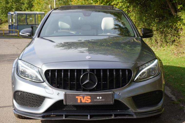 2017 Mercedes Benz C250d AMG Line Premium G-Tronic 4Matic 4 door saloon (Euro 6) - Automatic - Selenite Grey with full Ivory leather interior (electric/heated/memory front seats) - 90k miles - 2 former keepers - 2 remote keys - Mercedes Benz main dealer and independent garage service history - just serviced for sale by independent Mercedes specialist with Mercedes DSR updated - new front brake discs and pads - 2 new rear tyres - fresh 12 months MOT with no advisories - Platinum warranty - full 12 months AA roadside assistance also included! Panoramic roof! AMG GT grill! Night Pack! C63S Styling Pack! 19 AMG Twist alloy wheels freshly refurbished in black!