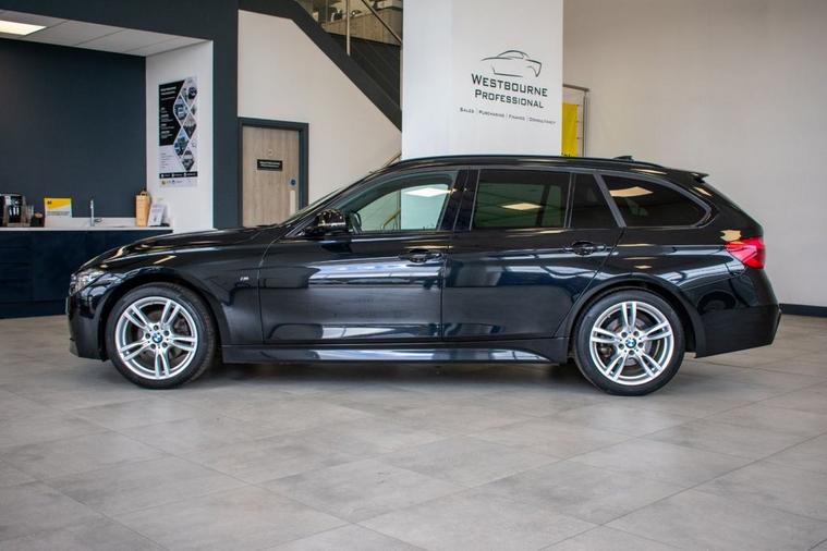 2016 16 BMW 320d xDrive M Sport Touring, finished in Black Sapphire with Black Dakota Leather interior. Equipped with excellent specification including BMW Professional Wide Screen Satellite Navigation System, Heated Front Seats, Power Tailgate, Rear View Camera, Enhanced Bluetooth Connectivity, BMW Professional Media Package, Automatic Dual Zone Climate Control, Cruise Control, DAB Radio, Automatic LED Headlights, Rear Park Distance Control, Tyre Pressure Monitoring System, Power Folding Mirrors, Sun Protection Glazing and more. Supplied with full BMW main agent and specialist service history.