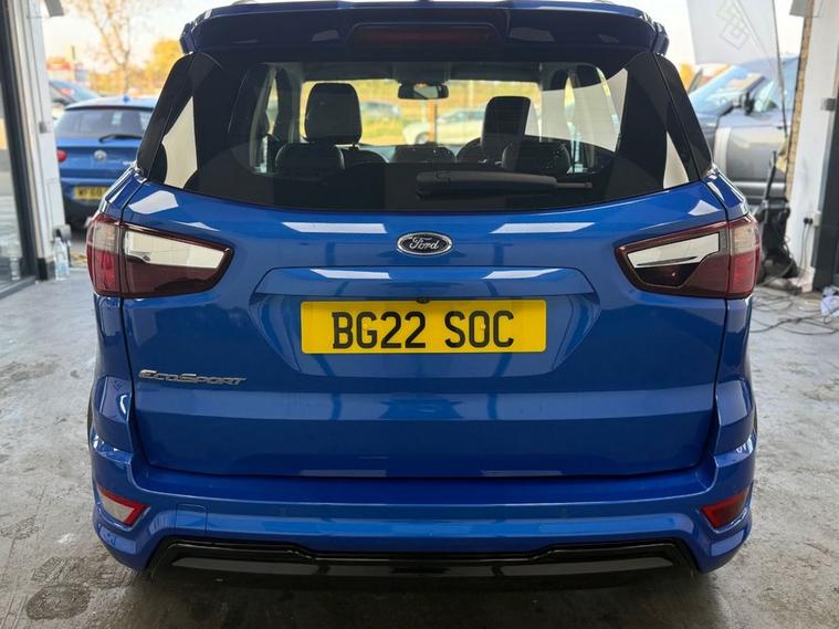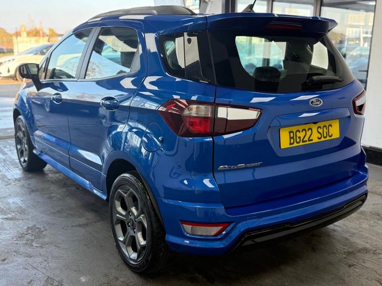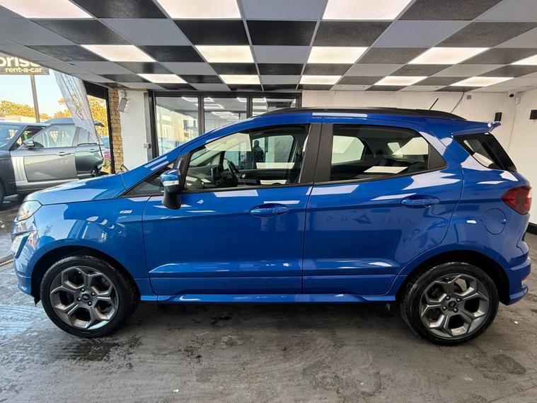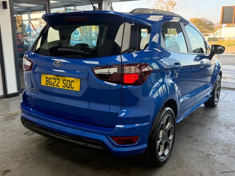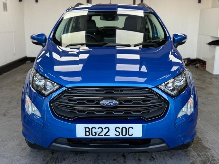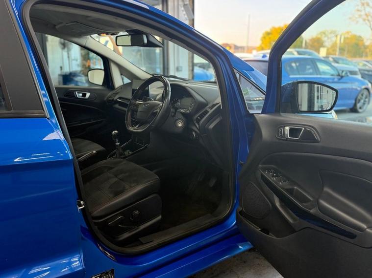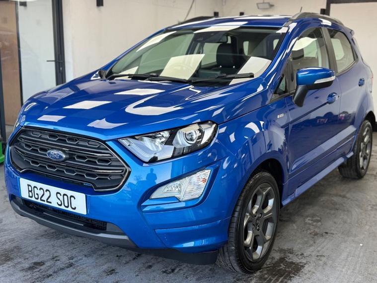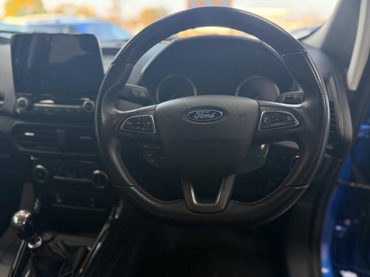 Now available: this Ford EcoSport 1.0T EcoBoost GPF ST-Line SUV, finished in vibrant blue and powered by a 125PS 1.0L petrol EcoBoost engine with a smooth 6-speed manual gearbox. The EcoSport ST-Line delivers sporty looks, agile handling, and everyday practicality all wrapped in Fords efficient and fun-to-drive design. With just 33, 287 miles and Euro 6 compliance, this stylish compact SUV offers low running costs, dynamic performance, and a high level of standard equipment. This vehicles specification is provided by CAP HPI please confirm details with a salesperson and inspect the vehicle before purchase. Vehicle Details: Engine: 1.0L Petrol EcoBoost (125 PS) Transmission: Manual Drivetrain: Front Wheel Drive Fuel Type: Petrol Euro 6 (s/s compliant) Mileage: 33, 130 miles Doors: 5 Colour: Blue Trim: ST-Line 2x Keys Highlighted Features: ST-Line Sport Styling with Unique Exterior Pack Half Leather / Suede Sports Seats with Red Stitching Touchscreen Infotainment with Navigation Apple CarPlay & Android Auto Rear Parking Sensors LED Daytime Running Lights Cruise Control & Speed Limiter Air Conditioning & Climate Control Bluetooth & USB Connectivity 17 ST-Line Alloy Wheels Keyless Start *Finance available part exchange welcome* *HPI clear, fully inspected, and prepared to high standards* *Enquire today to arrange a test drive or reserve this luxury family SUV* *Sporty, ecoboost, and compact available now*