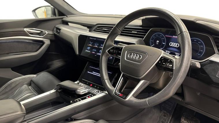 This 2021 Audi e-tron S line boasts a clear vehicle history and has had only one owner since new, offering peace of mind for its next custodian. As an electric vehicle with Four Wheel Drive, it combines efficiency with capable performance. The 71 kWh battery provides a maximum range of 199 miles when new, and can be fully charged at home using a 7kW charger in approximately 9 hours and 10 minutes. For quicker top ups, it can reach 80% charge in just 34 minutes at a compatible public charging station. The MOT is valid until May 2026, further underscoring its readiness for the road. Inside, this Audi e-tron S line offers a comfortable and convenient driving experience. Enjoy the warmth of heated front seats, and the ease of electrically adjustable front seats with a memory function for the driver. Parking is made simple with a rear view camera and the advanced Parking System Plus, featuring 360 degree sensors and function on demand preparation. Stay connected and powered up with the Audi Phone Box, which includes wireless charging. Furthermore, the generous boot space ensures you have ample room for luggage or shopping, making this e-tron a practical and well equipped choice.