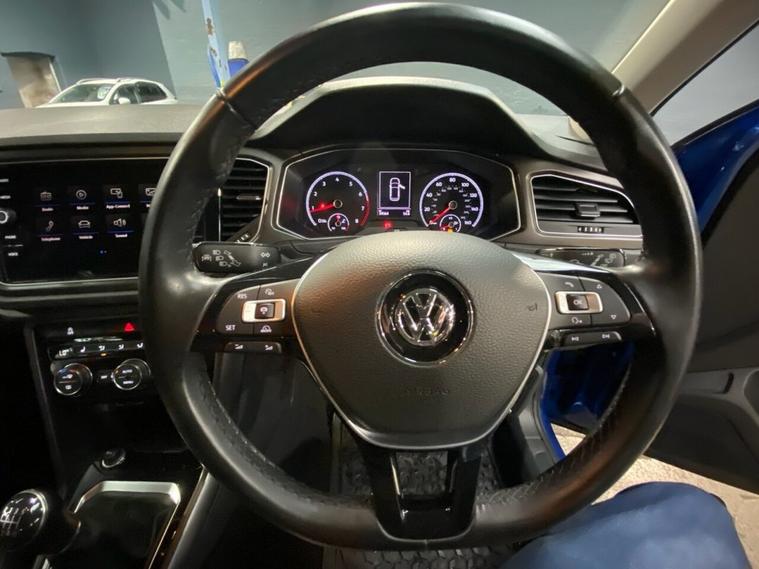 This 2018 Volkswagen T-Roc TSI EVO SE presents an exceptional ownership proposition with its remarkably low mileage of just 34, 000 miles and a single owner from new. This Euro 6 compliant 1.5 litre petrol model boasts a full service history, ensuring its mechanical well being. Inside, youll find sophisticated Dark Oak decorative inserts in the dash and door panels, enhancing the cabins premium feel. Convenience is key with Car-Net App-Connect, offering seamless integration with Android Auto and Apple CarPlay, while the Dusk Sensor automatically activates the headlights. The 2Zone electronic climate control maintains a comfortable environment, and Adaptive Cruise Control makes longer journeys more relaxed. This T-Roc stands out with its impressive fuel economy, achieving a highlight of 53 miles per gallon, which is better than many similar vehicles. Its low CO2 emissions and low insurance group also contribute to lower running costs, making it an economical choice. Furthermore, its brisk acceleration, reaching 0-60mph in just 8.4 seconds, demonstrates a pleasing blend of efficiency and performance.