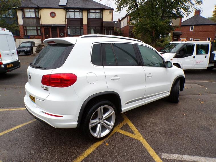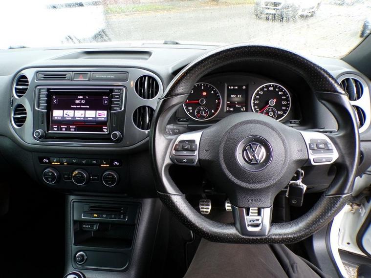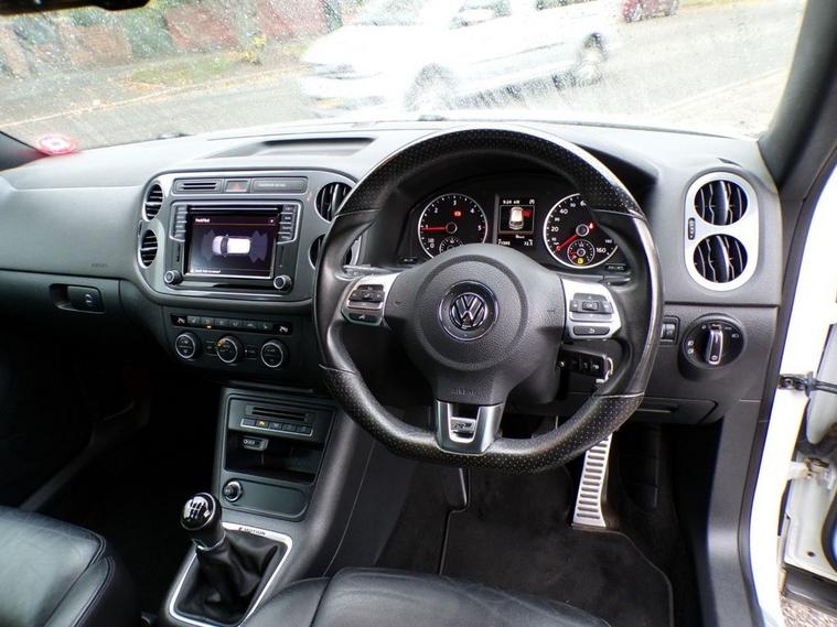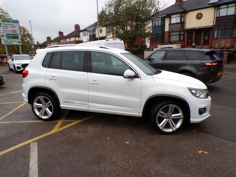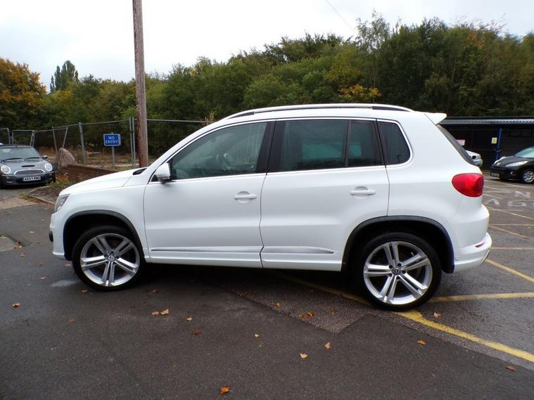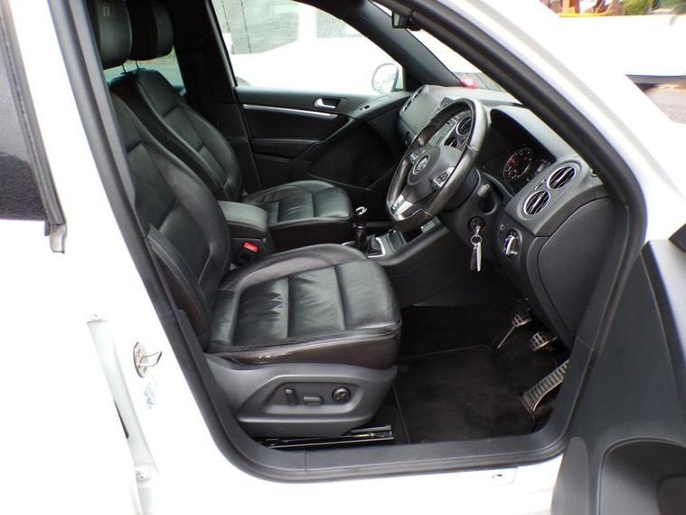 Very nicely presented Tiguan R Line finished in Pure White paintwork, this is a very low mileage example for its age having covered just 7000 miles per year on average from new & has had just 2 keepers with the last having ownership since 2019. Service history is presenet on the car at 10489, 20129, 38572, 54379 & 71508 miles respectively & it is very clear that this is a car that has been looked after & maintained to a very high standard both mechanically & cosmetically. Very large specification & trim level on this example the car offers Satellite Navigation, Bluetooth, Audio Streaming, MMI Connectivity, 6.5 Colour Touch Screen, Full Leather Upholstery, Heated Front Seats, 19 Alloy Wheels, Front & Rear Parking Sensors, Privacy Glass, Cruise Control, Power Fold Door Mirrors, DAB Radio, Tyre Pressure Monitoring, ISOFIX, Bi Xenon Headlights, Cornering Fog Lights, Auto Headlights & Rain Sensor to name just a few items. Overall a very clean & tidy example with a fabulous trim level & specification, just 2 owners, strong service history& lovely mileage for its age.