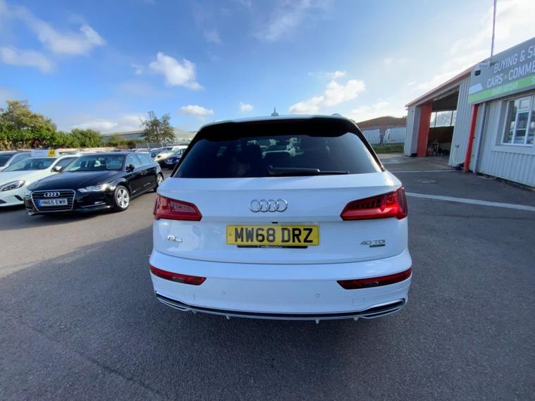 This 2018 Audi Q5 TDI S line offers a compelling blend of performance and refinement, boasting a robust 2.0 litre diesel engine and Audis renowned four wheel drive system for assured handling in all conditions. As a Euro 6 compliant vehicle, it meets stringent emission standards, while its impressive 2400 kg towing weight makes it a practical choice for those needing to tow. Inside, youll find comfort enhanced by heated front seats, and the advanced LED headlights with dynamic rear indicators ensure excellent visibility and a distinctive presence. The convenience of a Bluetooth interface and the Audi Parking System Plus, with front and rear sensors, further elevate the driving experience. The Q5 TDI S line demonstrates its superior capabilities with a brisk 0-60mph acceleration time of just 8.1 seconds, a figure that highlights its responsive performance compared to many vehicles in its class. The automatic on headlights, managed by a light and rain sensor, provide effortless illumination, adapting to changing conditions without driver intervention. This combination of dynamic performance, advanced technology, and practical features makes this Audi Q5 a well rounded and desirable premium SUV, FULL SERVICE HISTORY, 2 keys, HPI CLEAR. FINANCE AVAILABLE - LOW CREDIT SCORE? WE MAY STILL BE ABLE TO HELP. EXCELLENT EXTENDED AA WARRANTY OPTION AND 12 MONTH AA BREAKDOWN COVER INCLUDED. ALL CARS READY TO DRIVE AWAY. 5 DAY DRIVE AWAY INSURANCE AVAILABLE. RESERVE THIS CAR EXCLUSIVELY FOR YOU, SAFELY AND SECURELY AT dealer's website WITH A FULLY REFUNDABLE £99 DEPOSIT. ACT FAST - THIS WONT HANG AROUND LONG!