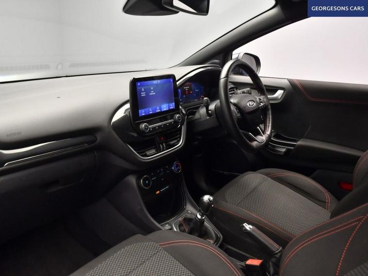 The Ford Puma 1.0T EcoBoost MHEV ST-Line combines a responsive 1.0-litre turbo mild-hybrid petrol engine with 125hp, delivering 0-62mph in 9.8 seconds and up to 52.3mpg in this front-wheel-drive setup with a precise 6-speed manual transmission. The ST-Line trim brings sporty flair with 17-inch alloy wheels, aggressive styling, and a dynamic chassis for engaging compact SUV performance. With one owner, this Puma is in excellent condition. Navigate effortlessly with integrated satellite navigation, Apple CarPlay, Bluetooth, and DAB radio, ensuring seamless connectivity on every journey. Parking is a breeze thanks to the parking sensors, providing confidence in tight spaces. Stay comfortable with air conditioning and a heated windscreen for quick defrosting year-round. Cruise control with speed limiter enhances relaxation on highways, while lane assist boosts safety on varied routes. The push-button start adds daily convenience. The spacious five-door SUV design includes a 456-litre boot for practicality.