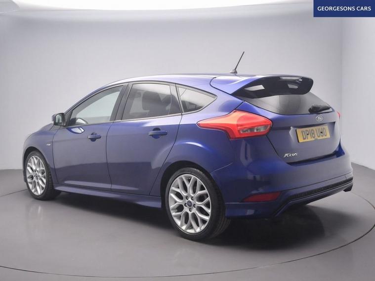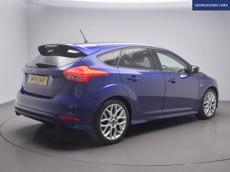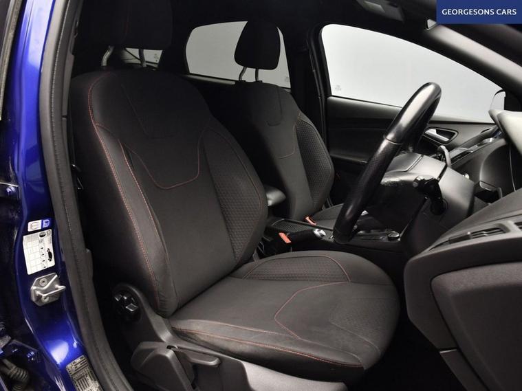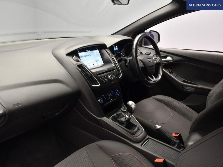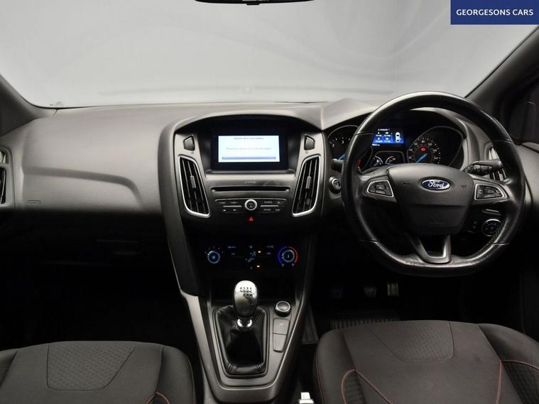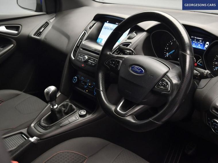 This Ford Focus 1.5 TDCi ST-Line combines a responsive 1.5-litre turbo diesel engine with 120hp, delivering 0-62mph in 10.5 seconds and up to 74.3mpg in this front-wheel-drive setup with a precise 6-speed manual transmission. The ST-Line trim enhances the sporty appeal with 17-inch alloy wheels, aggressive styling, and a dynamic chassis for engaging family hatchback performance. With eight services, this Focus is in excellent condition. Navigate effortlessly with integrated satellite navigation, Apple CarPlay, Bluetooth, and DAB radio, ensuring seamless connectivity on every journey. Stay comfortable with air conditioning, offering personalized cooling year-round. The push-button start adds daily convenience. The spacious five-door hatchback design includes a 375-litre boot for practicality