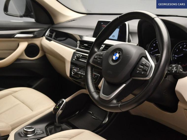 The BMW X1 2.0 20i xLine combines a responsive 2.0-litre turbo petrol engine with 204hp, delivering 0-62mph in 7.1 seconds and up to 42.8mpg in this front-wheel-drive setup with a smooth 7-speed DCT automatic transmission. The xLine trim enhances the premium appeal with 18-inch alloy wheels, rugged styling, and a dynamic chassis for refined SUV performance. With six services, this X1 is in excellent condition. Navigate effortlessly with integrated satellite navigation, Bluetooth, and DAB radio, ensuring seamless connectivity on every journey. Parking is a breeze thanks to the parking sensors, providing confidence in tight spaces. Ambient lighting creates a sophisticated interior atmosphere, while dual-zone climate control and heated seats offer personalized comfort year-round. Cruise control with speed limiter enhances relaxation on highways. Paddle shift gears and selectable drive modes provide precise control and tailored performance, whether for efficiency or spirited driving. Start-stop technology improves fuel economy in traffic. The spacious five-door SUV design includes a 505-litre boot for practicality.