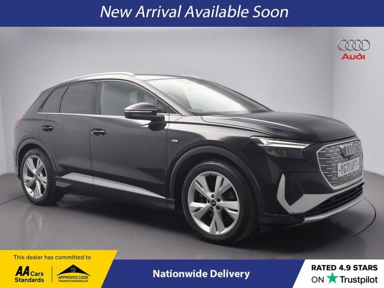The Audi Q4 e-tron 35 S line combines an efficient electric motor with 201hp, delivering 0-62mph in 8.5 seconds and up to 329 miles of WLTP range in this front-wheel-drive setup with a smooth single-speed automatic transmission. The S line trim enhances the sporty appeal with 19-inch alloy wheels, aggressive styling, and a dynamic chassis for refined EV SUV performance. With one owner and two services, this Q4 e-tron is in excellent condition. Navigate effortlessly with integrated satellite navigation, Apple CarPlay, Bluetooth, and DAB radio, ensuring seamless connectivity on every journey. Parking is a breeze thanks to the parking sensors, providing confidence in tight spaces. Stay comfortable with front and rear climate control and heated seats, offering personalized cooling and warmth year-round. Adaptive cruise control with speed limiter and lane assist enhance safety and relaxation on highways. The push-button start adds daily convenience, while the spacious five-door SUV design includes a 520-litre boot for practicality