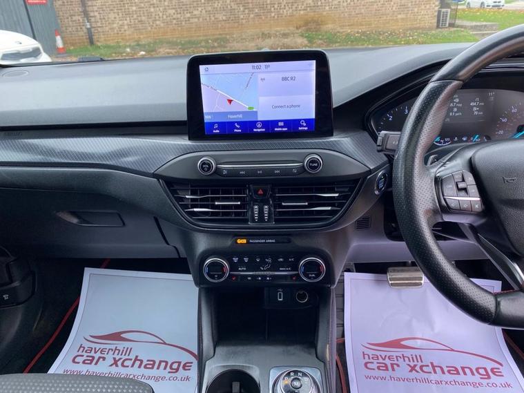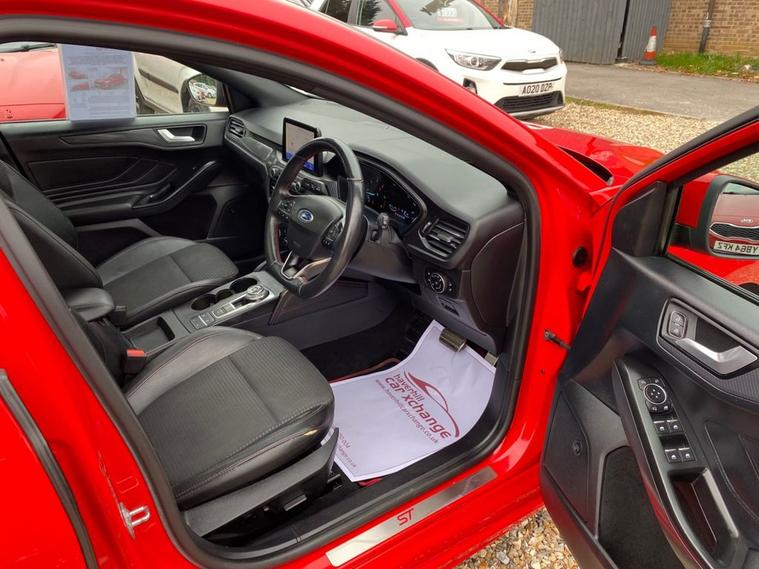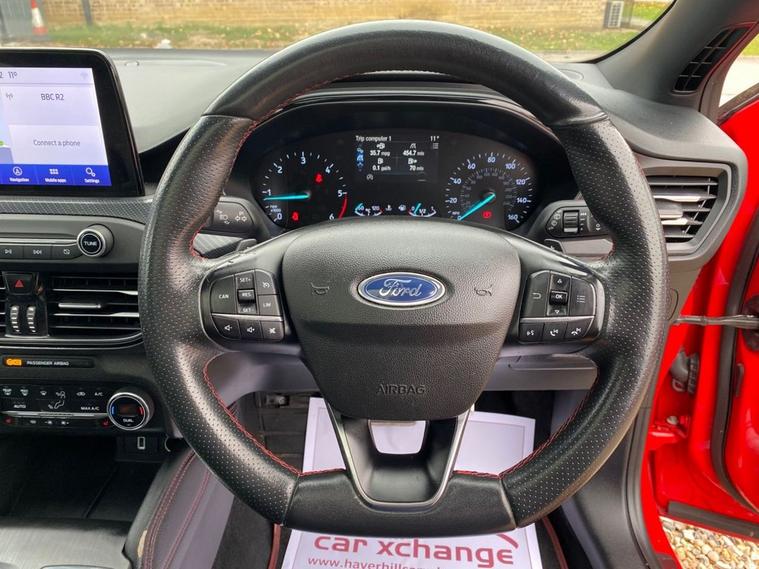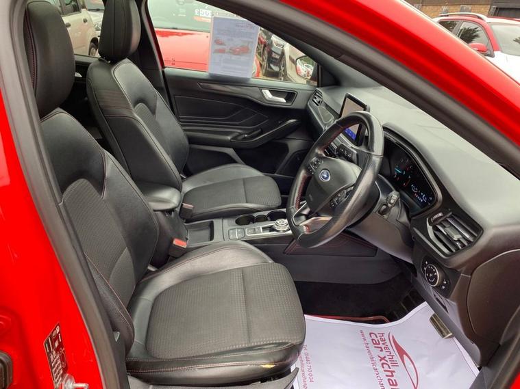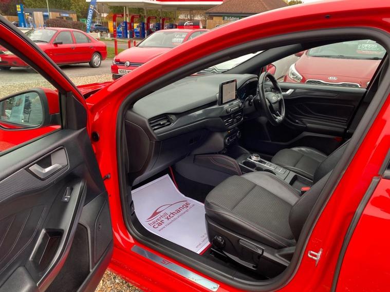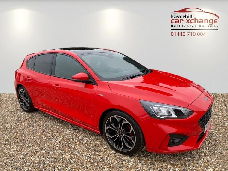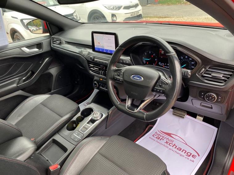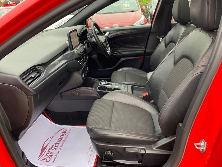 AUTOMATIC+SERVICE HISTORY+£1, 395 OF FEATURES WHICH INCLUDE AN 8 INCH COLOUR DISPLAY WHICH FEATURES SATELLITE NAVIGATION SYSTEM+FORD SYNC3 DABD DIGITAL RADIO+FORDPASS CONNECT+DUAL ZONE CLIMATE CONTROL AIR-CONDITIONING+LUXURIOUS HEATED HALF LEATHER UPHOLSTERY+RAIN-SENSING WINDSCREEN WIPERS+FRONT & REAR PARKING ASSISTANCE WITH PARKING CAMERA+PANORAMIC GLASS ROOF+RACE RED PAINT+18 INCH ALLOY WHEELS. At Haverhill Car Xchange we would like to offer you our AUTOMATIC Ford Focus ST-Line X Hatchback which has been finished in a Race Red paint, Luxurious HEATED Ebony half leather and cloth upholstery with Red Stitching. Excellent Specification Includes an 8 Inch Colour Touchscreen which featured DAB Satellite Navigation System, Ford SYNC3, Lane Keeping Aid with Lane Departure Warning, Dual Zone Climate Control Air-Conditioning, Paddle Shift, Ford ECO Mode, Cruise Control with Speed Limiter, Electrically Operated Front and Rear Window with One-Touch Opening/Closing, Body Coloured Bumpers/Door Handles/Door Mirrors and Rear Spoiler, Unique ST-Line Upper and Lower Grille and Full Bodystyling Kit and St-Line Wing Badges, ST Line Stainless Steel Scuff Plates, Halogen Headlights, LED Front Fog Lights with Cornering Function, Automatic Dimming Rear View Mirror, Rain-Sensing Windscreen Wipers, Front and Rear Parking Assistance with Parking Camera, 3-Spoke Flat Bottomed Leather Trimmed Multifunction Steering Wheel, Panoramic Glass Roof, Electric Parking Break, 18 Inch Alloy Wheels, Electric Power Assisted Steering, ABS Breaking System, Airbags, Alarm, Immobiliser, Remote Central Locking and ISOFIX Anchorage Points for Child Seats.