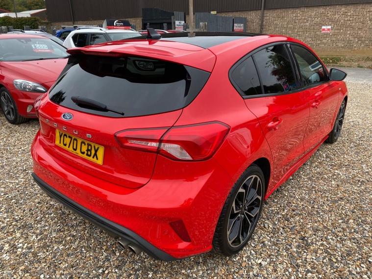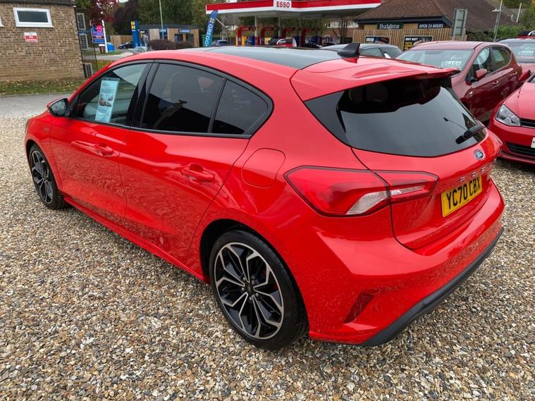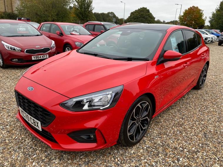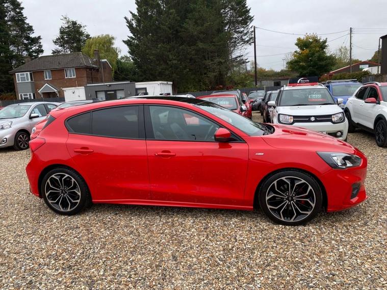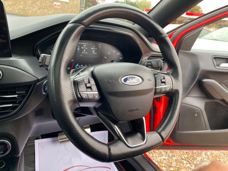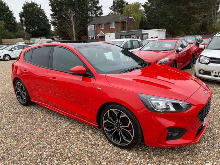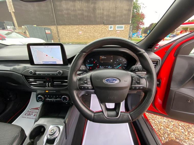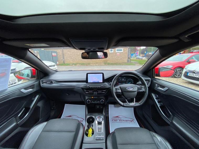AUTOMATIC+SERVICE HISTORY+£1, 395 OF FEATURES WHICH INCLUDE AN 8 INCH COLOUR DISPLAY WHICH FEATURES SATELLITE NAVIGATION SYSTEM+FORD SYNC3 DABD DIGITAL RADIO+FORDPASS CONNECT+DUAL ZONE CLIMATE CONTROL AIR-CONDITIONING+LUXURIOUS HEATED HALF LEATHER UPHOLSTERY+RAIN-SENSING WINDSCREEN WIPERS+FRONT & REAR PARKING ASSISTANCE WITH PARKING CAMERA+PANORAMIC GLASS ROOF+RACE RED PAINT+18 INCH ALLOY WHEELS. At Haverhill Car Xchange we would like to offer you our AUTOMATIC Ford Focus ST-Line X Hatchback which has been finished in a Race Red paint, Luxurious HEATED Ebony half leather and cloth upholstery with Red Stitching. Excellent Specification Includes an 8 Inch Colour Touchscreen which featured DAB Satellite Navigation System, Ford SYNC3, Lane Keeping Aid with Lane Departure Warning, Dual Zone Climate Control Air-Conditioning, Paddle Shift, Ford ECO Mode, Cruise Control with Speed Limiter, Electrically Operated Front and Rear Window with One-Touch Opening/Closing, Body Coloured Bumpers/Door Handles/Door Mirrors and Rear Spoiler, Unique ST-Line Upper and Lower Grille and Full Bodystyling Kit and St-Line Wing Badges, ST Line Stainless Steel Scuff Plates, Halogen Headlights, LED Front Fog Lights with Cornering Function, Automatic Dimming Rear View Mirror, Rain-Sensing Windscreen Wipers, Front and Rear Parking Assistance with Parking Camera, 3-Spoke Flat Bottomed Leather Trimmed Multifunction Steering Wheel, Panoramic Glass Roof, Electric Parking Break, 18 Inch Alloy Wheels, Electric Power Assisted Steering, ABS Breaking System, Airbags, Alarm, Immobiliser, Remote Central Locking and ISOFIX Anchorage Points for Child Seats.