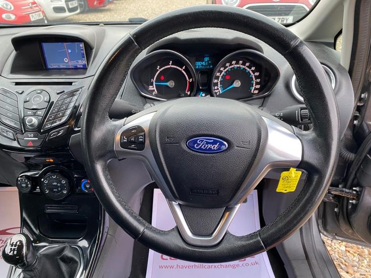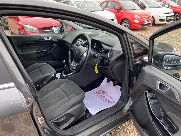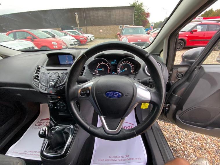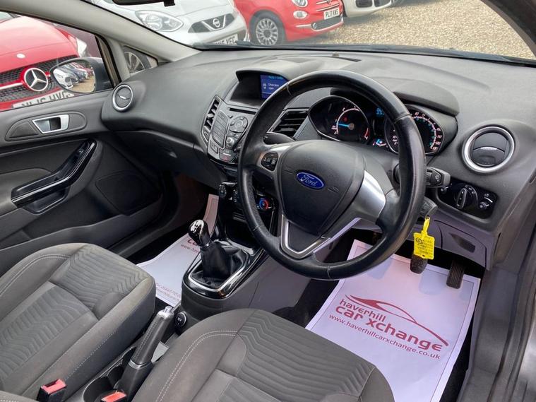 ONLY £20 A YEAR ROAD TAX+LONG MOT UNTIL 04.04.2026+FORD SYNC-FORD DAB+AIR-CONDITIONING+HALOGEN PROJECTOR HEADLIGHTS AND LED DAYTIME RUNNING LIGHTS+METALLIC MAGNETIC GREY PAINT+15 INCH ALLOY WHEELS. At Haverhill Car Xchange we would like to offer you our Ford Fiesta Zetec Hatchback which has been finished in a metallic Magnetic Grey paint with Charcoal Black Lithos Cloth upholstery. Specification Includes Ford DAB with Ford SYNC, 12 Volt Power Socket, Air-Conditioning, Gear Shift Indicator, Electrically Operated Front Windows with One-Touch Facility, Body Coloured Bumpers/Door Handles/Door Mirrors with Integrated Side Indicators and Rear Roof Spoiler, Halogen Projector Headlights with Silver Surrounds and LED Daytime Running Lights, Headlights with Courtesy Delay, Front Fog Lights, High Mounted Rear Break Light, 3-Spoke Leather Steering Wheel, Quickclear Heated Windscreen, Tinted Glass, 15 Inch Alloy Wheels, Electric Power Assisted Steering, Hill Start Assist, Airbags, Alarm, Immobiliser, Remote Central Locking and ISOFIX Anchorage Points for Child Seats.