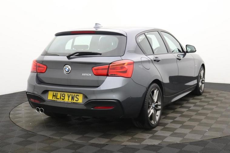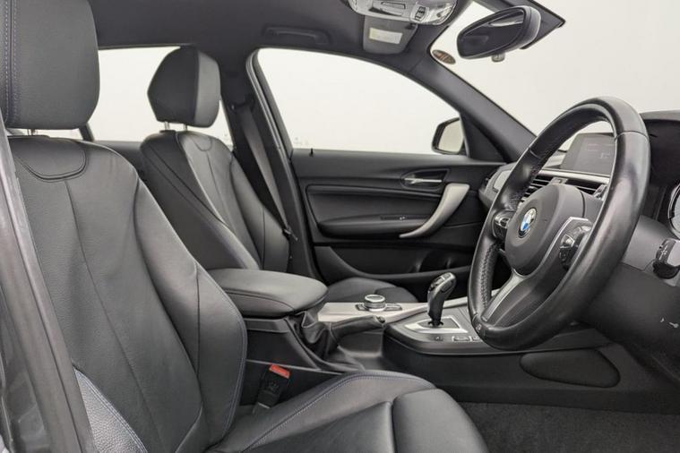 Henson Car store Presents the BMW 1 SERIES 2.0 120i GPF M Sport Hatchback 5dr Petrol Auto Euro 6 (s/s) finished in Mineral Grey, this car comes with service history. This 2019 BMW 120i M Sport delivers the perfect combination of performance, luxury, and everyday practicality. Under the bonnet, it features a lively 2.0-litre TwinPower Turbo petrol engine producing 184hp, paired with a smooth-shifting 8-speed automatic transmission. Euro 6 compliant and equipped with a gasoline particulate filter (GPF), it offers cleaner emissions and strong fuel efficiency, making it both dynamic and responsible. Finished in the desirable M Sport trim, this 5-door hatchback boasts sporty styling with aggressive M aerodynamic features, 18-inch alloy wheels, and LED lighting. The interior is equally impressive, featuring premium Dakota leather upholstery, M Sport seats, a leather-wrapped M steering wheel, and a refined driver-focused layout. The cabin is spacious, well-built, and filled with intuitive technology. Whether youre cruising through the city or enjoying a spirited drive on country roads, the BMW 120i M Sport offers sharp handling, smooth power delivery, and the premium feel youd expect from the brand. Its a superb all-rounder for drivers who want performance, style, and everyday usability in one sleek package.
