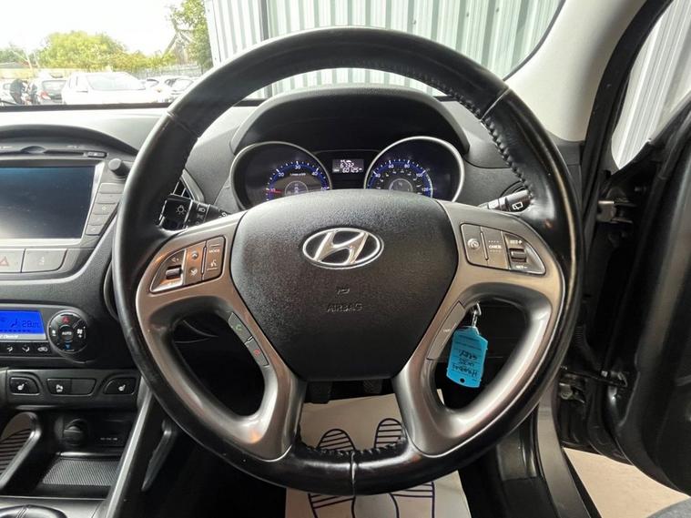 Moto Vation Car Sales are proud to offer this Hyundai IX35 in a great colour- Grey with half Black leather interior. With only one previous owner from new, it is clear it has been loved. Supplied with a Full Years MOT and Full Service History attached with 9 stamps- last around 58K. Many extras including a Multi Functional Steering Wheel, AUX, USB, Bluetooth, Heated Seats, Sat Nav, Heated Seats, Cruise Control, Voice Command, Isofix and Parking Sensors. £195 annual tax. Please confirm with a Sales Executive how many keys this vehicle comes with. All of our vehicles come with a 3 months Nationwide warranty and a 12 months basic AA breakdown cover. Please read our reviews! Please note- the above vehicle specification is confirmed and correct. The vehicle specification listed elsewhere may sometimes be inaccurate so please check with the Sales team when enquiring to clarify this prior to purchase.