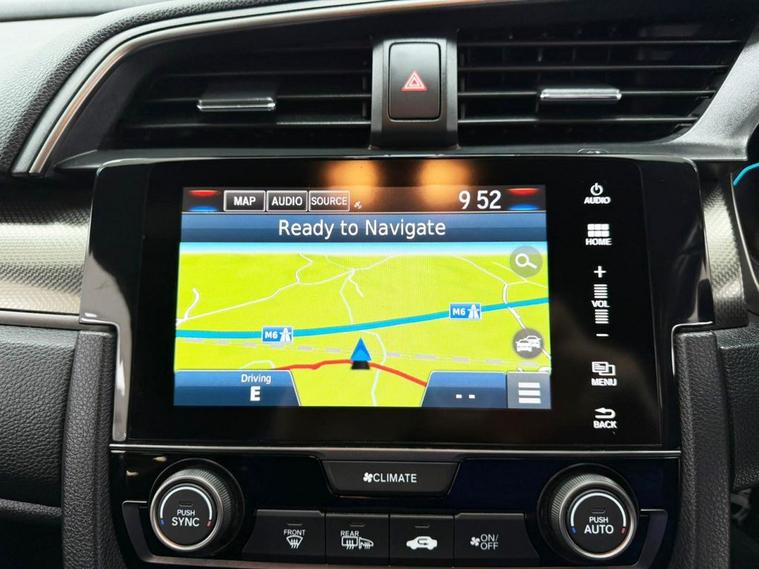 This 2018 Honda Civic VTEC Turbo SR presents an exceptional opportunity with its remarkably low mileage of just 20229 miles. This Euro 6 compliant 1.0 litre petrol model offers a refined driving experience, enhanced by features such as dusk sensing automatic headlights and front and rear parking sensors for effortless manoeuvring. Inside, youll find the Honda CONNECT system complete with GARMIN navigation and Android Auto, alongside Bluetooth hands free telephone for seamless connectivity on the go. Intelligent Adaptive Cruise Control also features, making longer journeys more relaxed. The Civic VTEC Turbo SR is designed for practicality and efficiency. Its generous boot space ensures you have ample room for luggage or shopping, while its low CO2 emissions contribute to a more environmentally conscious drive. With an acceleration of 0-60mph in 10.8 seconds, this Honda Civic demonstrates a balanced performance that is often better than other vehicles in its class, offering a responsive yet economical drive.