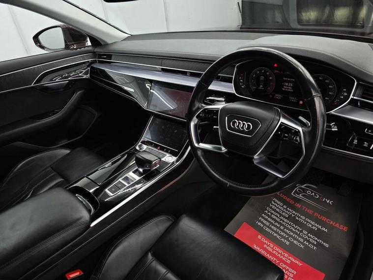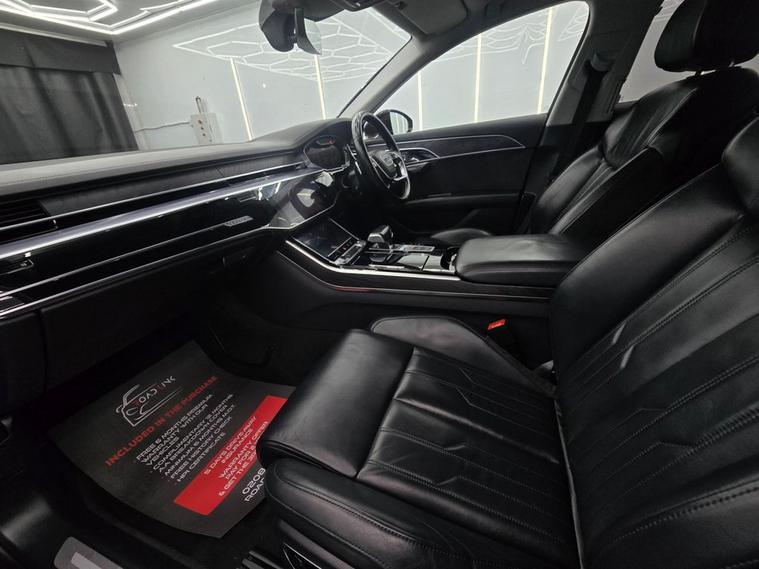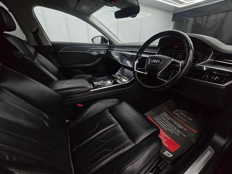 Experience first-class luxury and performance with this Audi A8 3.0 TFSI V6 55 quattro. Powered by a refined 340PS engine and smooth Tiptronic gearbox, it delivers effortless acceleration and all-weather grip through Audis quattro system. Inside, youre surrounded by modern craftsmanship 22-way electric heated seats with memory, a digital Virtual Cockpit, and head-up display. Stay connected with MMI Navigation Plus, wireless charging, and Audi Smartphone Interface. Adaptive air suspension and Drive Select ensure a smooth, tailored drive every time. Finished with 18in alloys, LED headlights, and a power-operated tailgate, this A8 blends sophistication, comfort, and control in perfect harmony.