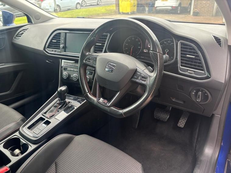 Scotts of Leeds Car Sales are pleased to offer this SEAT LEON 1.8 TSI FR Technology Hatchback 5 Door Petrol Automatic DSG in Blue. The car is in good condition throughout, in a lovely colour combination and a great specification including Satellite Navigation, Cruise control, Speed limiter, apple carplay, DAB radio, Bluetooth, Rear parking sensors, alloy wheels, USB point, isofix, Electric windows, and much much more. The car will be supplied with an up to date service record having just been serviced in our Workshop, an MOT until August 2026 and 2 Keys ready to drive away. A guaranteed 12 Months MOT can be added for an extra £100. DISCLAIMER: The above specification is true and correct. Any other specification listed elsewhere can sometimes be incorrect. Please check with Sales Executive to clarify this if needed prior to purchase.