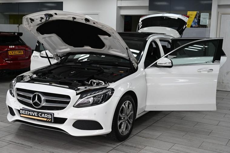 DRIVE AWAY TODAY OR HOME DELIVERY ANYWHERE IN MAINLAND UK FINANCE & PART EXCHANGE ARRANGED ONLINE **7 DAY MONEY BACK GUARANTEE** Nice spec Mercedes c250 Blue Tec Sport in metallic white with full service history sat nav cd dab radio bluetooth media usb reverse camera panoramic glass roof full leather seats with armrest heated seats electric memory seats electric folding door mirrors front and rear parking aid sensors xenon lights eco comfort sport individual driving modes f1 style paddleshifts electric push button tailgate alloys privacy