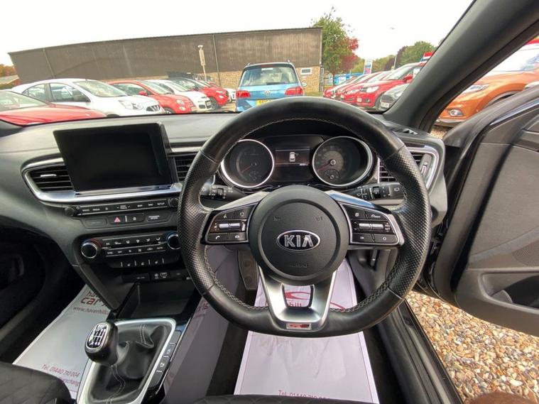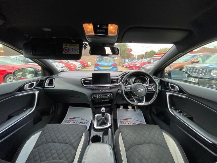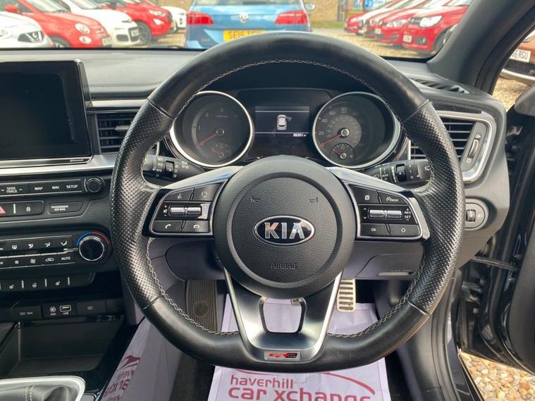 8 INCH TOUCHSCREEN TOMTOM SATELLITE NAVIGATION SYSTEM+DAB RADIO-APPLE CARPLAY/ANDROID AUTO+BLUETOOTH WITH VOICE RECOGNITION AND MUSIC STREAMING+CLIMATE CONTROL AIR-CONDITIONING+AUTOMATIC HEADLIGHT ACTIVATION+RAIN-SENSING WINDSCREEN WIPERS+HEATED HALF LEATHER SEATS+HEATED STEERING WHEEL+PARKING ASSISTANCE WITH PARKING CAMERA+METALLIC PHANTOM BLACK PAINT+17 INCH ALLOY WHEELS. At Haverhill Car Xchange we would like to offer you our Kia Ceed GT-Line Hatchback which has been finished in a metallic Phantom Black paint with luxurious HEATED Black half leather and cloth upholstery. Excellent Specification Includes an 8 Inch Touchscreen Satellite Navigation System featuring Kia Connected Services Featuring TOMTOM, DAB Digital Radio- Apple CarPlay/Android Auto, Bluetooth with Voice Recognition, USB and AUX Ports for Connection of Media Device, 12 Volt Power Socket, Lane Keeping Assist, Dual Zone Climate Control Air-Conditioning, Gear Shift Indicator, All-Round Electric Windows with Driver and Front Passenger Auto Up-Down Function, Body Coloured Bumpers/Door Handles/Door Mirrors with Integrated Side Indicators and Rear Spoiler, Automatic Headlight Activation, LED Daytime Running Lights, Front Fog Light, LED Rear Lights, LED High Mounted Break Light, Rain-Sensing Windscreen Wipers, Parking Assistance with Parking Camera, Heated Seats, Heated Multifunction Steering Wheel, Heated Rear Windows, Privacy Glass, 17 Inch GT Line Alloy Wheels, Motor Driven Power Steering, Impact Sensing Auto Door Unlocking, Child Safety Door Locks, Engine Start-Stop Button, ABS Breaking System, Airbags, Alarm, Immobiliser, Central Locking and ISOFIX Anchorage Points for Child Seats.