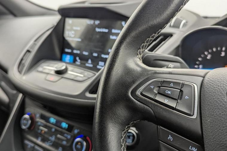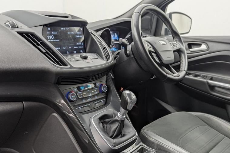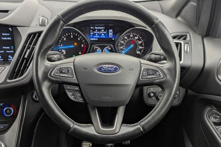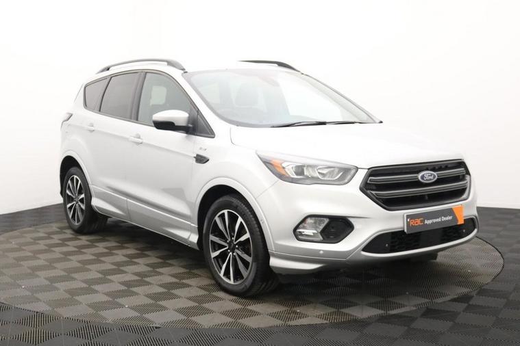 Henson Car Store presents the FORD KUGA 2.0 TDCi EcoBlue ST-Line SUV 5dr Diesel Manual Euro 6 (s/s) finished in Silver, Discover this 2017 Ford Kuga TDCi ST-Line, a well presented example that offers a compelling blend of style and practicality. Powered by a robust 2.0L Diesel engine and meeting Euro 6 emissions standards, this ST-Line trim model is equipped with a suite of advanced features designed to enhance your driving experience. Enjoy the convenience of rear parking sensors and enhanced active park assist, which includes front and rear sensors for effortless manoeuvring. Inside, youll find the DEATC dual-zone electronic automatic temperature control for personalised comfort, alongside the Ford DAB Navigation System with Ford SYNC3, offering seamless Bluetooth connectivity. The automatic halogen headlights with LED daytime running lights ensure visibility is always optimal. This Ford Kuga stands out with its low insurance group, making it an economical choice for many drivers. Furthermore, its low CO2 emissions indicate a more environmentally conscious performance compared to similar vehicles. These highlights, combined with its comprehensive feature set, position this Kuga TDCi ST-Line as a smart and capable option for those seeking a reliable and well-equipped SUV.