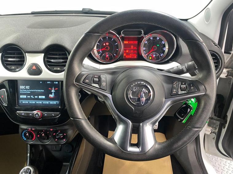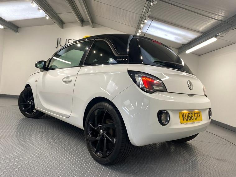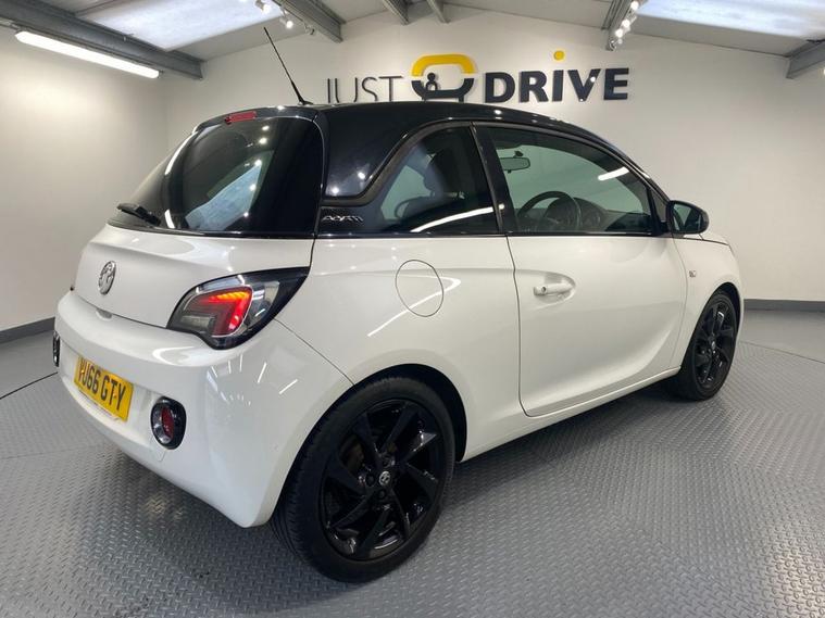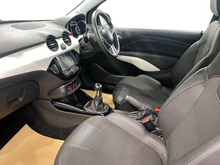 The Adam is one of smartest-looking hatchbacks around and is an ideal choice for the younger driver thanks to its Group 2 Insurance. The Adams are known for their quirky paint schemes and this one looks great in Saturday White Fever - a colour exclusive to this model, together with a contrasting black roof / mirror caps and 17 gloss black alloy wheels. Inside the white paint scheme continues across the dashboard and doors and the sports seats in part leather effect material are very clean and supportive too. You also get a colour touchscreen media system, cruise control, ice cold air conditioning and Bluetooth connectivity with phone and audio controls easily accesible on the leather multi-function steering wheel. The lively 1.2 petrol engine is reliable and economical with Vauxhall suggesting up to 68 mpg achievable on a motorway journey. The rear seats have ISOFIX anchor points for compatible child seats and the City Mode power steering function makes parking in tight spaces an easy task.