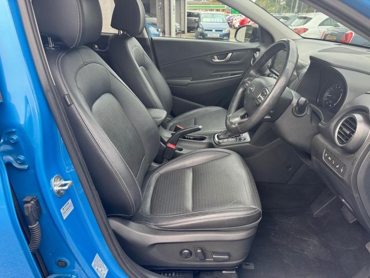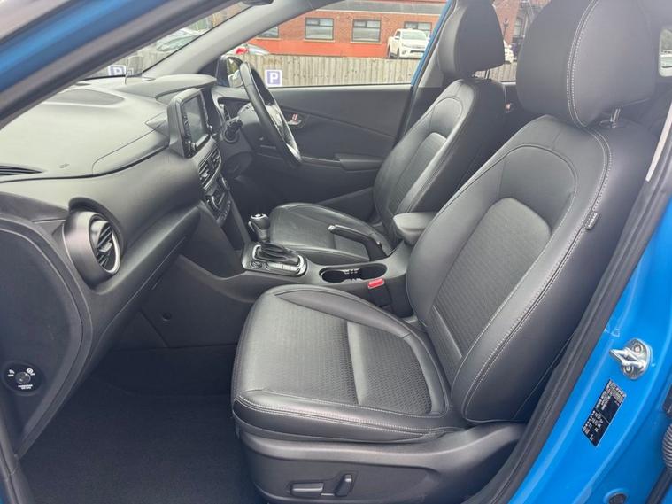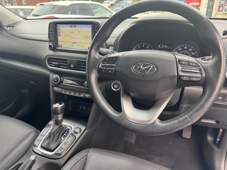 Hyundai Kona 1.6 Petrol AUTO 4x4 GT Premium top spec example. Only 2 owners from new with full service service history. Outstanding spec includes 18 alloys, full leather interior, front heated/cooled seats, electric front seats, heated steering wheel, Power folding wing mirrors, Wireless phone charging, Cruise control, lane departure warning system + blind spot warning system, sat nav, Bluetooth, rear parking sensors, 360 parking camera, USB input, multi-function steering wheel, auto headlights, head-up display, auto wipers, climate control with A/C and much much more. Call 01138032273 or visit dealer's website