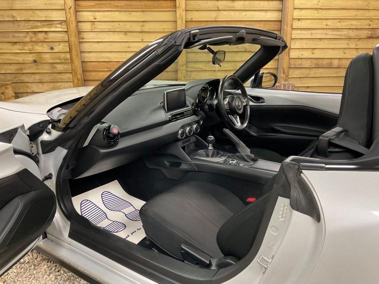 20, 808 MILES ONLYYES JUST 20, 808 MILES FSH.DEMO + TWO LOCAL PRIVATE OWNERS FROM NEWRARE OPPORTUNITY NOT TO BE MISSEDTHIS ULTRA LOW MILEAGE MX5 IS FINISHED IN BEAUTIFUL SILVER METALLIC WITH DARK GREY PATTERN INTERIORSPEC INCLUDES16ALLOYS. 6 SPEED. AIR/CON. TRACTION. CRUISE. VOICE. S/S POWER BUTTON. MULTI FUNCTION STEERING WHEEL. MULTI MEDIA COLOUR TOUCH SCREEN DISPLAY. DAB RADIO. SAT/NAV. BLUETOOTH. 2 X USB PORTS. TINTED GLASS. MX5 OVER MATS. ETCTRULY EXCELLENT EXTERIOR & INTERIOR CONDITIONDOES DRIVE EXTREMELY WELLMUST BE SEEN TO BE APPRECIATEDFULL DEALER FACILITIESFAMILY RUN BUSINESS