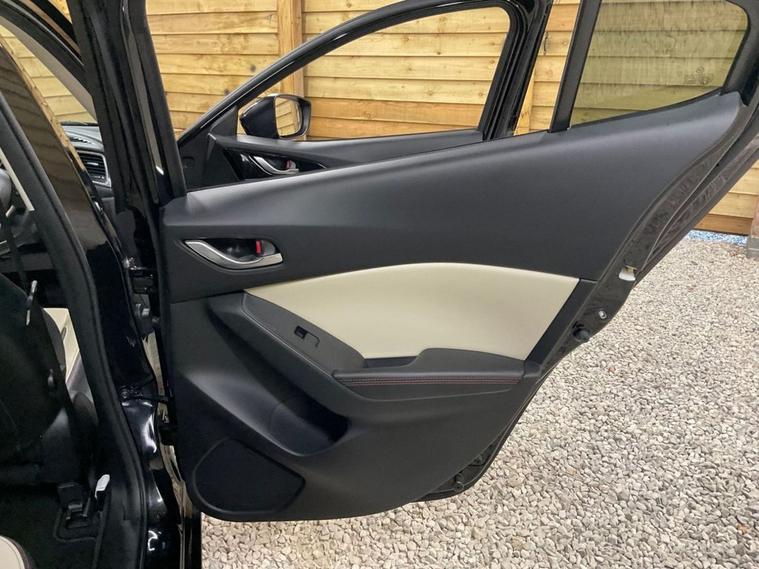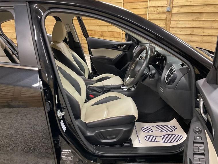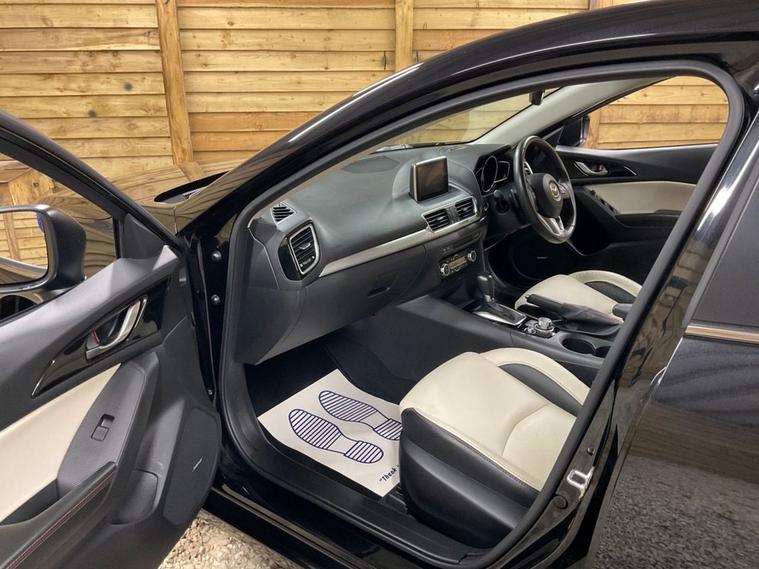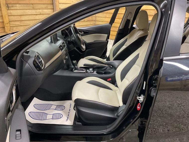 7, 475 MILES ONLYYES JUST 7, 475 MILES FSHONE LOCAL PRIVATE OWNER FROM NEWUNIQUE OPPORTUNITY NOT TO BE MISSEDTHIS MUCH SOUGHT AFTER HIGH SPEC MAZDA 3 AUTOMATIC IS FINISHED IN BEAUTIFUL BLACK METALLIC WITH LIGHT STONE / BROWN LEATHER UPHOLSTERYSPEC INCLUDES18ALLOYS. 6 SPEED AUTOMATIC WITH PADDLE SHIFTS. CRUISE. TRACTION. RVM. AFS. LANE ASSIT. HEADS UP DISPLAY. MULTI FUNCTION STEERING WHEEL. COLOUR TOUCH SCREEN DISPLAY. RADIO C/D. SAT/NAV. BLUETOOTH. F/R PARKING ASSIT. MEDIA 2 X USB PORTS. HEATED FRONT SEATS. ELEC DRIVERS SEAT. ELEC FOLDING MIRRORS. PRIVACY GLASS. LED RUNNING LIGHTS. MAZDA 3 OVER MATS. ETCTRULY EXCELLENT EXTERIOR & INTERIOR CONDITION.DOES DRIVE EXTREMELY WELLMUST BE SEEN TO BE APPRECIATEDFULL DEALER FACILITIESFAMILY RUN BUSINESS.