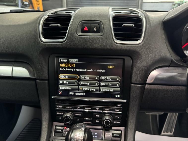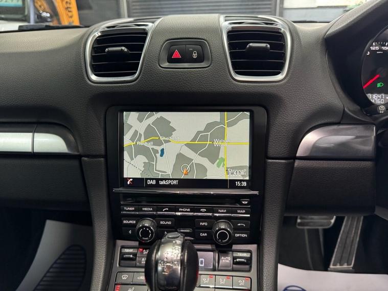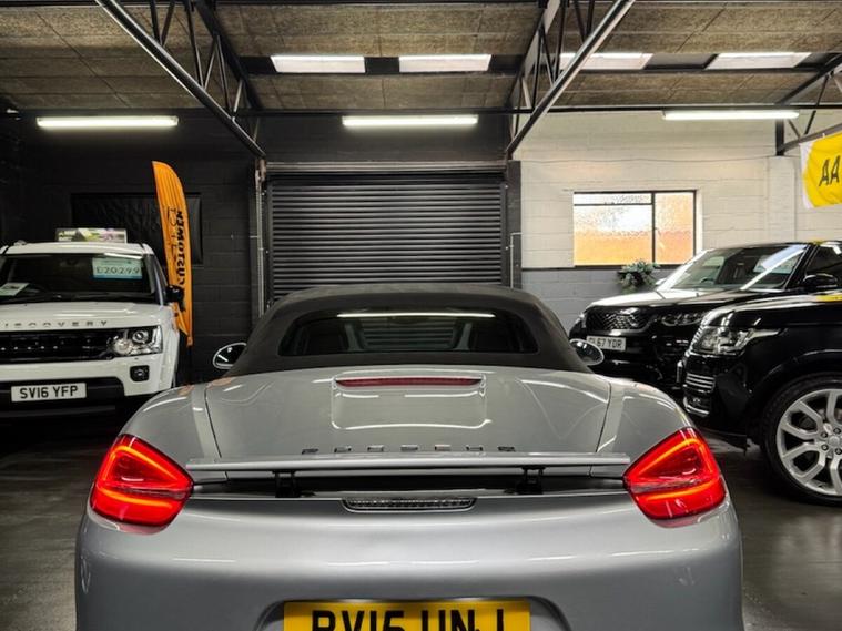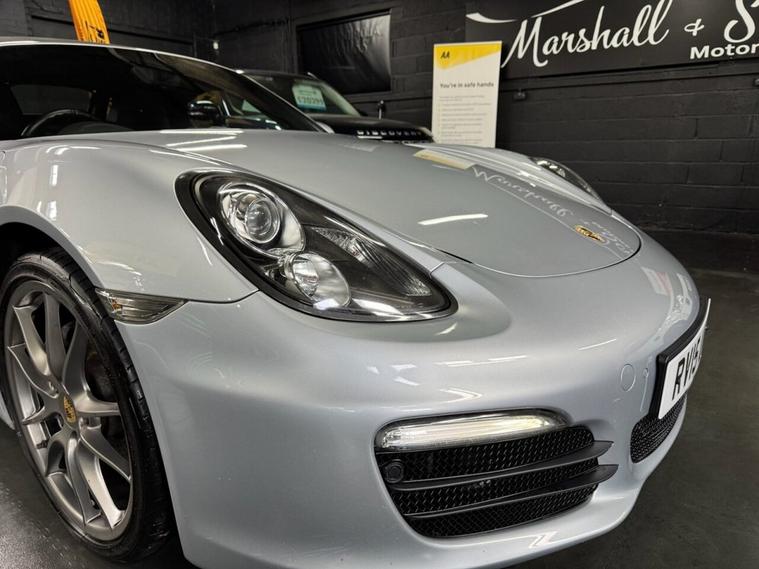 2015 Porsche Boxster 2.7 981 PDK (265 PS) Euro 6 Presented in Rhodium Silver Metallic (M7U) with a Black Leather Interior, this stunning Boxster has covered just 68, 000 miles and benefits from a comprehensive service history comprising 5 services. A truly well-specified example with over £11, 000 worth of factory options. Factory Options & Key Features: Porsche Communication Management (PCM) with Satellite Navigation 20 Carrera S Alloy Wheels (painted in Platinum) Porsche Doppelkupplung (PDK) Dual-Clutch Transmission with Auto Start/Stop BOSE Surround Sound System Full Black Leather Seats Heated Front Seats Park Assist (Front and Rear) 2-Zone Automatic Climate Control Sport Design Steering Wheel Mobile Phone Preparation with Bluetooth Interface Wind Deflector Top-Tint Windscreen Colour-Matched Floor Mats Metallic Paint Finish A beautifully maintained and exceptionally specified example of the 981-generation Boxster, offering the perfect balance of performance, refinement, and open-top driving enjoyment.