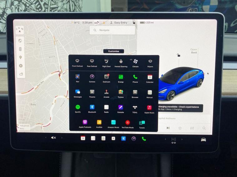 This 2021 Tesla Model 3 Long Range boasts a single owner from new, offering a pristine example of this popular electric vehicle. As a Long Range variant, it features a substantial 78 kWh battery, providing an impressive maximum range of 360 miles when new. This Four Wheel Drive electric car is equipped with convenient features such as inductive charging mats for two smartphones, adaptive cruise control for effortless journeys, and Bluetooth connectivity. Parking is made simpler with both front and rear parking sensors, ensuring confidence in all situations. The Tesla Model 3 Long Range stands out with its exceptional electric performance and practicality. The 360 mile range highlights its capability for longer trips, significantly reducing the need for frequent charging compared to many other electric vehicles. When charging is needed, a full charge at home using a 7kW charger takes approximately 12 hours, while rapid public charging can replenish the battery from empty to 80% in just 26 minutes. Furthermore, the generous boot space offers ample room for luggage and shopping, making this Model 3 a versatile choice for everyday use and adventures alike.