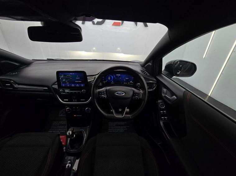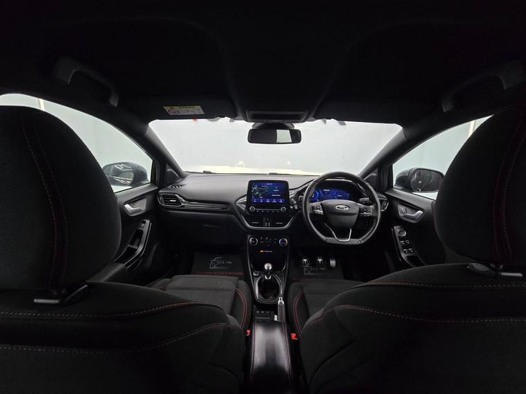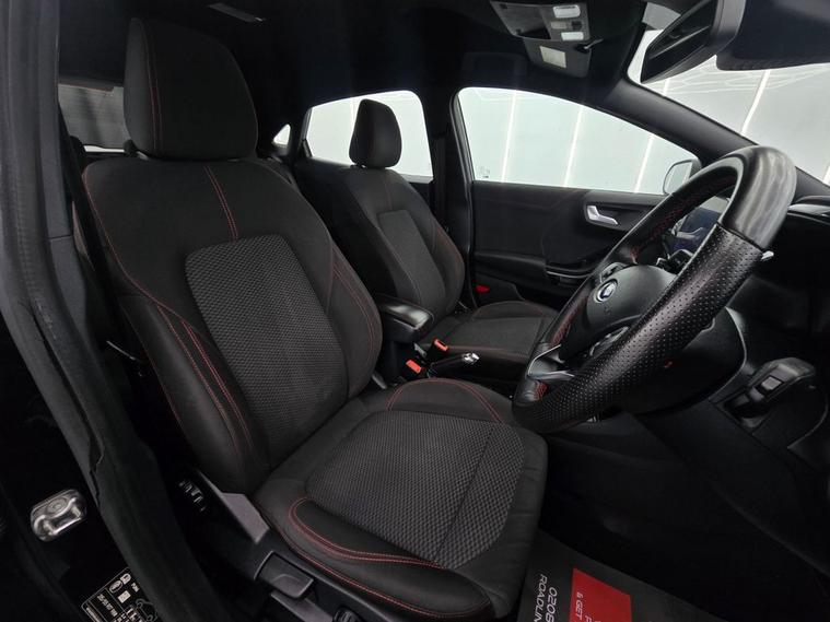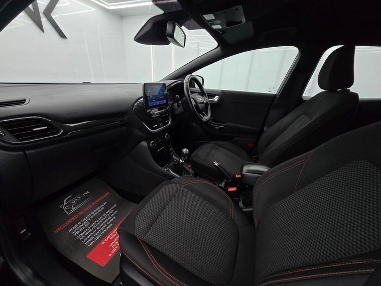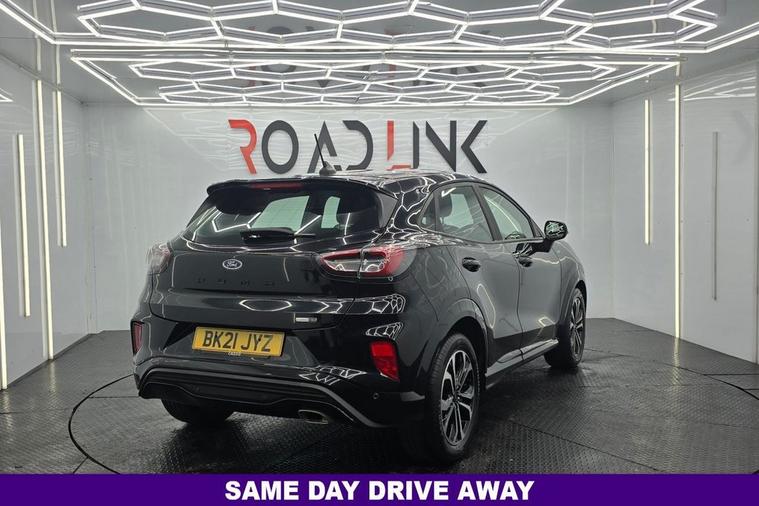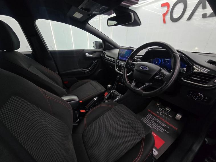 Dynamic, stylish, and smart the Ford Puma redefines the modern crossover with sporty confidence. Its 17in 5x2 spoke alloy wheels, ST-Line body styling kit, and large rear spoiler create a bold, athletic presence on the road. Inside, the cabin exudes sophistication with front sports seats, red stitching, a flat-bottomed leather steering wheel, and a 12.3in full digital instrument cluster. Stay seamlessly connected with Ford SYNC 3 navigation, wireless charging, and smart driver assistance features including cruise control, lane keeping aid, and pre-collision assist with pedestrian and cyclist detection. Comfort meets practicality with a deluxe headliner, centre console armrest, and the innovative Ford MegaBox extended bootspace. Automatic headlights, rain-sensing wipers, Quickclear heated windscreen, and power-foldable heated mirrors make every journey effortless. Safety is built in with ESC, ABS, post-collision braking, and a Thatcham alarm for peace of mind. With selectable driving modes, sports suspension, and refined agility, the Ford Puma delivers a confident and thrilling drive every time.