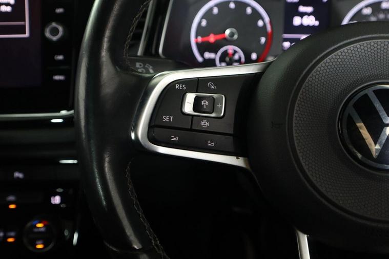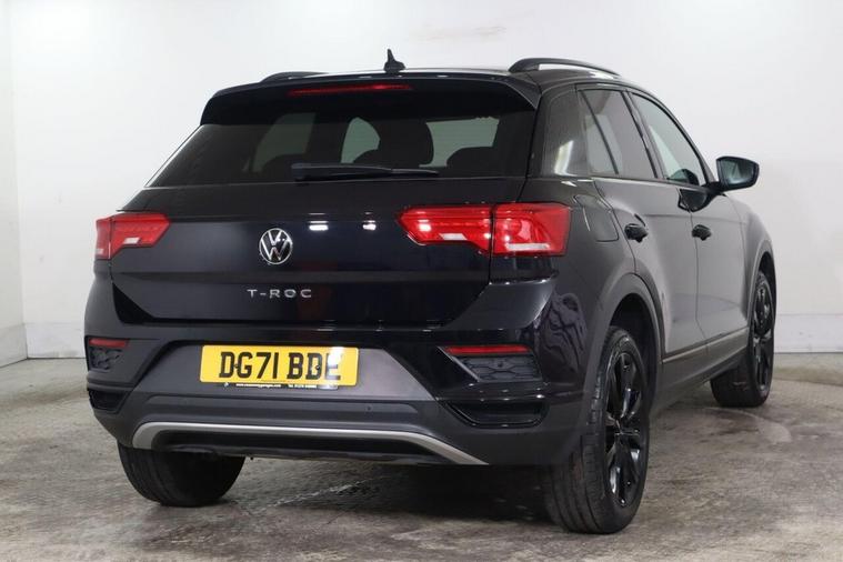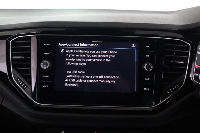 This 2021 Volkswagen T-Roc TSI EVO Black Edition is a superb example, having had only one owner since new. This stylish SUV boasts a 1.5 litre petrol engine, meeting Euro 6 emissions standards. The Black Edition trim enhances its appeal, and you'll find convenience features like front and rear parking sensors, complete with parking assistance. Stay connected and entertained with the Ready 2 Discover infotainment system, offering Bluetooth connectivity and Wireless App Connect for seamless integration of Android Auto and Apple CarPlay. Driving after dark is made easier with LED headlights and an automatic dusk sensor that switches them on when needed. Experience the responsive performance of this T-Roc, with its impressive 0-62mph acceleration in just 8.6 seconds. This figure highlights how this vehicle offers a more dynamic driving experience compared to many others in its class. The combination of its efficient engine, advanced technology, and thoughtful features makes this Volkswagen T-Roc a compelling choice for those seeking a well maintained and capable compact SUV.