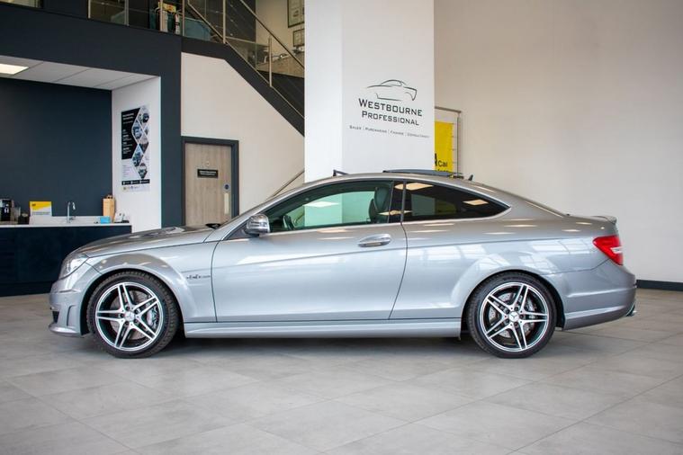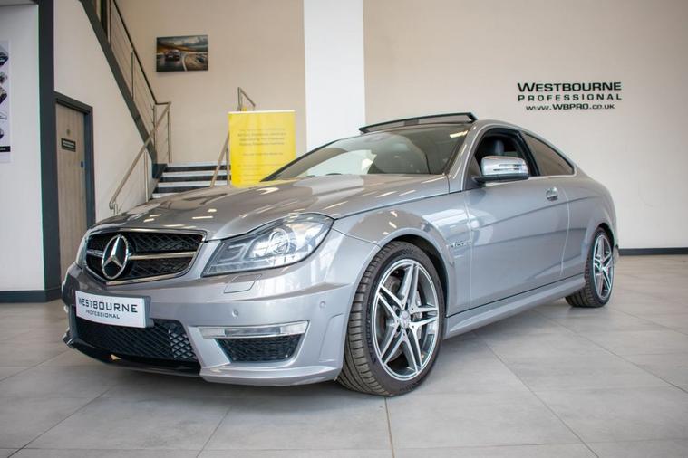 2013 63 Mercedes-Benz C63 AMG Edition 125 Coupe, finished in Palladium Silver with Black Designo Leather interior. Equipped with excellent specification to include Electric Tilt & Slide Panoramic Sunroof, Heated Electric Memory Seats, Front & Rear Parking Sensors, Cruise Control, Satellite Navigation, DAB Radio, Bluetooth Connectivity, Automatic Dual Zone Climate Control, Automatic Xenon Headlights with High Beam Assist, Leather Multifunction Steering Wheel with Paddle Shift, 18-inch AMG 5-Twin-Spoke Design Alloy Wheels, Tyre Pressure Monitoring System and more. Supplied with full service history carried out by both Mercedes-Benz main agents and independent specialists, most recently on 26th August 2025 at 59186 miles.