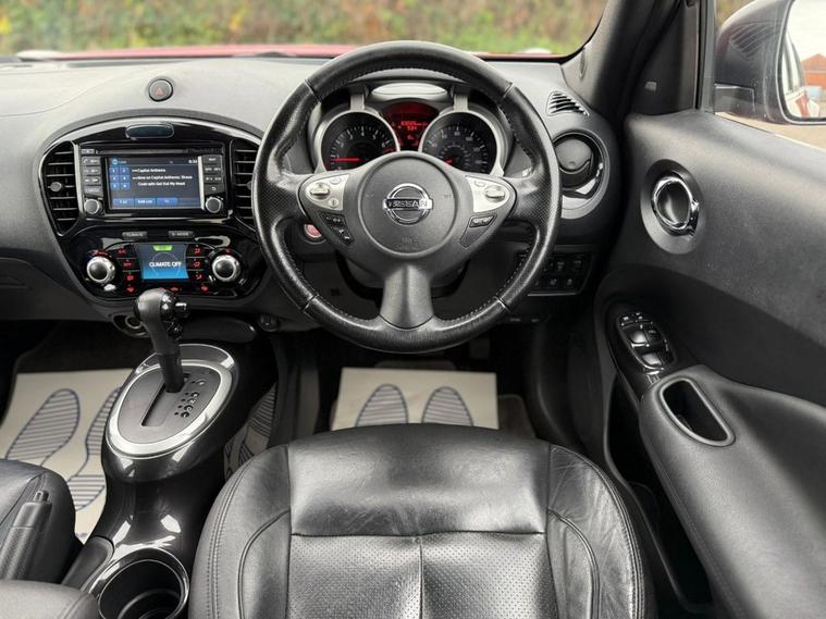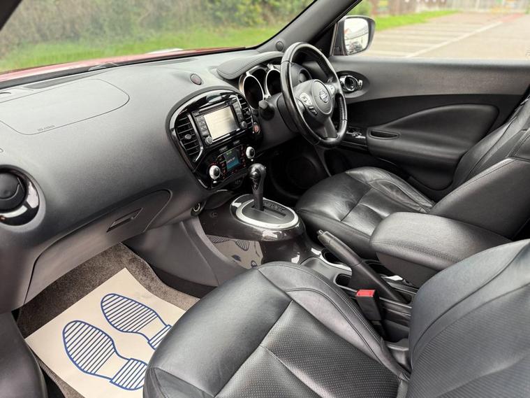 Here for sale at Leigh Cars Ltd we are delighted to present this fantastic example of a Nissan Juke 1.6 Petrol Tekna XTRON Automatic 117bhp finished in magnetic red paint. This car is in great condition inside and out and comes with good service history (5 services in total - last completed in October 2025). As part of our thorough pre sale preparations the vehicle has been fully safety checked, serviced and also benefits from a long MOT - expiry August 2026. This model level comes with some great specification in its class including full black leather heated Seats, power fold heated mirrors, built in satellite navigation, rear camera, lane assist and blind spot monitoring, automatic lights and wipers, bluetooth, cruise control, climate control, keyless entry, mp3 connection + USB, electric windows + mirrors, 17 alloy wheels, 2 keys + much much more. This automatic Juke is perfect for any growing family and comes with some great specification and an abundance of space and practicality with impressive running costs over 47.1mpg and only £195 to tax a year. This automatic petrol Juke is also ULEZ charge exempt. Book in your appointment today and take it for a test drive to see what it is about... As we are an AA accredited dealer you will receive 12 months complimentary AA roadside assistance. AA warranty packages available up to 2 years and superb low rate zero deposit finance deals available today. Why not give us a call or visit our website finance calculator to see how affordable your new car could be. We are rated 5 stars by our customer reviews on Autotrader, Facebook, Google and Car Gurus so you can be assured you are dealing with a company that truly cares about the customer. We take great pride in providing a personal quality service like no other and guarantee to make your purchase a smooth and pleasant experience. Please read our customer reviews online to see what they have to say about the level of service they received from us when purchasing a car. We have recently been awarded with the accolade of Car Gurus Top Rated Dealer 2023 - thats 6 years running now! We have also been awarded Autotrader Highly Rated Dealer 2019, 2020, 2022 and 2023 - Buy Your Car From The Best In Essex. Viewing strictly by appointment only - please call to avoid disappointment. Nationwide delivery available with 14 day money back guarantee subject to T&Cs. Please enquire for further details.