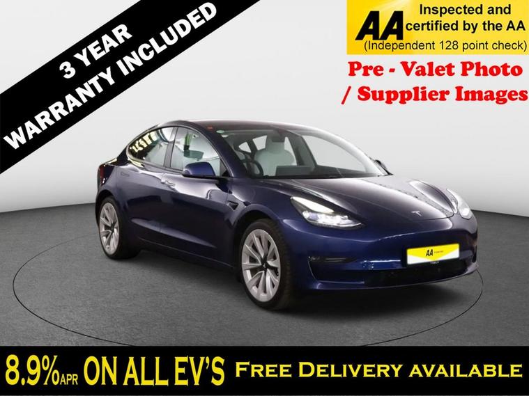 This 2021 Tesla Model 3 Long Range presents a superb ownership proposition, having had only one owner since new. As an electric vehicle with Four Wheel Drive, it offers an impressive battery maximum range of 360 miles when new, powered by a 78 kWh battery. Charging is convenient, taking approximately 12 hours for a full charge at home using a 7kW charger, or a rapid 26 minutes to reach 80% charge at a public charging station. This Model 3 is equipped with a suite of helpful features including Park Assist Camera with front camera functionality, two Inductive Charging Mats for wireless smartphone charging, a Heated Steering Wheel for added comfort, Rear Parking Sensors, and Blind Spot Information to enhance awareness. The Long Range variant of the Tesla Model 3 stands out with its exceptional range, offering 360 miles from a single charge, which is a significant advantage over many other electric vehicles. This model also boasts a large boot space, providing ample room for luggage and shopping. The combination of its impressive electric range, advanced driver assistance features like Park Assist and Blind Spot Information, and the convenience of wireless phone charging and a heated steering wheel, makes this Tesla Model 3 a compelling choice for those seeking an efficient and well equipped electric car.
