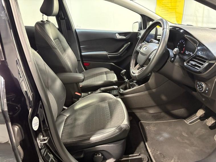 This Fiesta 5dr has a great specification including Sat Nav-1/2 Leather-AppleCar Play / Andriod Auto-Rear camera-Air conditioning / Climate control-Heated seats-Remote central locking-Bang & Olufsen-6 Speed-Sync 3-Rear parking camera-LED day running lights-Hill hold assist-Privacy glass-Auto lights-Front & rear parking sensors-4 x Electric windows-Park assist-Leather multifunction steering wheel-Fogs with cornering-17 Alloys-9 x Services-Actual mileage 68562