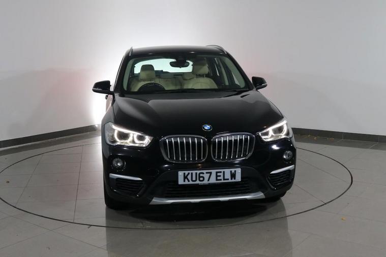 This well maintained Euro 6 BMW X1 xLine finished in Jet Black looks fantastic complemented by 18 inch Alloy Wheels, Adaptive LED Headlights and xLine Body Styling. Find your way with integrated SATELLITE NAVIGATION with LCD Display. Sit in luxury with FULL LEATHER Upholstery with HEATED FRONT SEATS. Park in ease with REAR PARKING SENSORS with Visual Display. Keep connected with BLUETOOTH phone system with USB port. Listen to your music through DAB Digital Radio. Comfortable to drive with Dual-Zone CLIMATE CONTROLLED AIR CONDITIONING and CRUISE CONTROL. Well equipped with Power-Operated Tailgate, Auto Headlights and Rain-Activated Wipers. Also fitted with ISOFIX seats, Drive Performance Control, Ambient Lighting, Multifunctional Steering Wheel, Alarm and Remote Door Locking with 2 x keys. Buy in confidence with JUST 1 OWNER + Lease Company With Owner Use and SERVICE HISTORY with 7 x Documented Services.