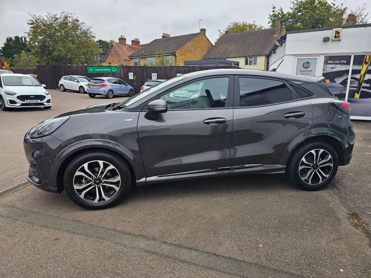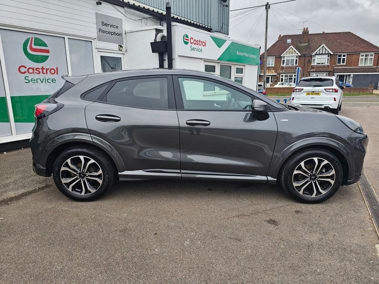 Here we have a 2023 Ford Puma ST-Line, finished in the sleek and stylish Magnetic Grey a colour that perfectly complements its sporty, confident design. This is a one-owner car, originally supplied by us from new, and its been fully serviced by us ever since. In short, its a superb, well-cared-for example of one of the UKs favourite compact SUVs. Now, if youre after a car that can keep you warm and make parking effortless, this Puma ticks all the right boxes! From new, it was fitted with both the Winter Pack and the Parking Pack thats £850 worth of factory extras designed to make your life a little easier (and a lot more comfortable). The Winter Pack means youll enjoy heated front seats and a heated steering wheel, perfect for those frosty mornings no more cold hands or chilly commutes! Meanwhile, the Parking Pack includes front and rear parking sensors, a reversing camera, and Active Park Assist which can even steer you into a space while you control the pedals. Whether its parallel parking or tight supermarket bays, this Pumas got your back. Under the bonnet, youll find Fords efficient and lively 1.0-litre EcoBoost Mild Hybrid engine, giving you great performance with lower running costs. Its nippy around town, smooth on the motorway, and just plain fun to drive exactly what youd expect from a Ford. Inside, the ST-Line trim gives you a sporty, high-quality cabin with red stitching, a flat-bottom steering wheel, and Fords SYNC 3 infotainment system with Apple CarPlay and Android Auto. Its practical too, with Fords clever MegaBox boot storage adding extra space and versatility for your day-to-day needs. This 2023 Puma combines style, technology, and comfort in all the right ways its a car that makes every journey a pleasure, whether its the morning commute or a weekend getaway. Highlights: 2023 Ford Puma ST-Line in Magnetic Grey 1 owner from new supplied & serviced by us Winter Pack heated front seats & heated steering wheel Parking Pack front & rear sensors, reversing camera & Active Park Assist 1.0 EcoBoost Mild Hybrid engine efficient & fun to drive SYNC 3 infotainment with Apple CarPlay & Android Auto ST-Line sporty styling inside and out MegaBox boot storage for extra practicality Stylish, smart, and packed with premium features this Ford Puma ST-Line has everything you need to make driving easier, warmer, and more enjoyable. Get in touch today to book your test drive!