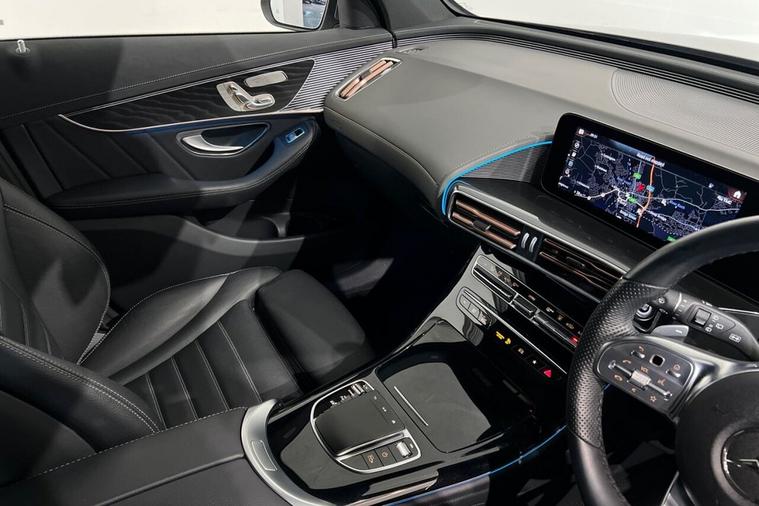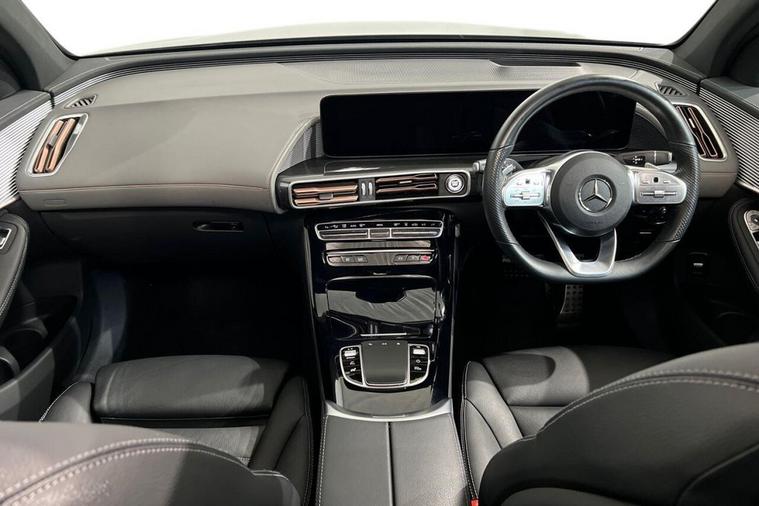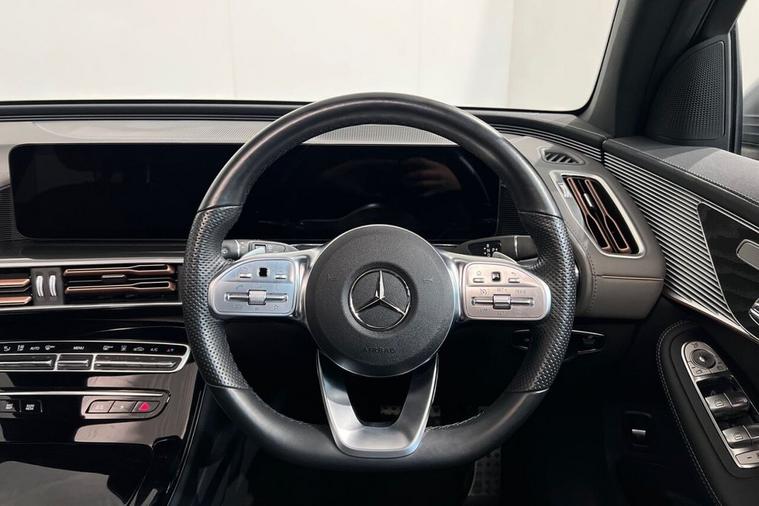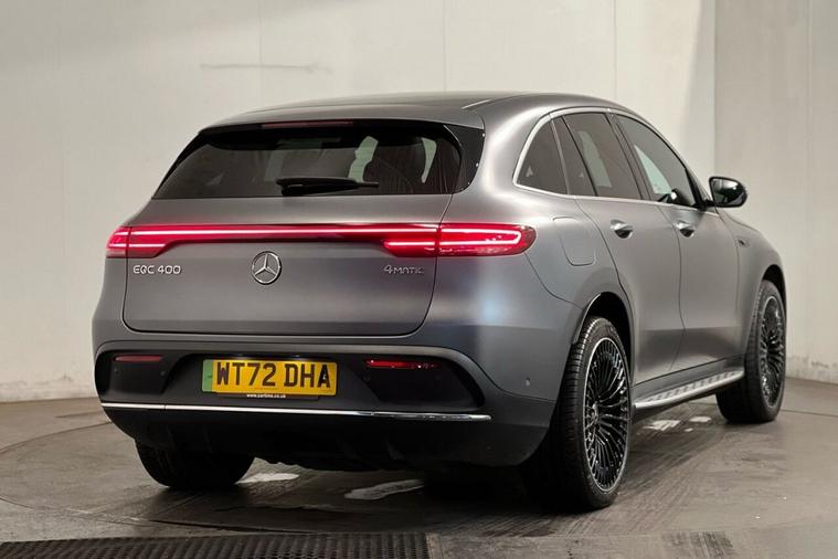 This 2022 Mercedes-Benz EQC 400 AMG Line (Premium Plus) has had only one owner since new, offering excellent provenance. This all electric, four wheel drive SUV boasts an impressive 88 kWh battery, providing a maximum range of 253 miles when new. Charging at home on a 7kW charger will take approximately 12 hours and 13 minutes for a full charge, while rapid public charging can replenish the battery from empty to 80% in just 45 minutes. The vehicle is in excellent condition with its MOT valid until October 2026. Notable features include a Head Up Display, advanced MULTIBEAM LED Headlights, a premium Mercedes-Benz Sound System, an electric sliding sunroof, and THERMATIC climate control for your comfort. Experience exhilarating performance with the EQC 400 AMG Line, accelerating from 0 to 60mph in a swift 5.1 seconds, demonstrating its dynamic capability. This acceleration figure highlights its superior performance compared to many other electric SUVs. Furthermore, the generous boot space ensures practicality for all your needs, making it a versatile choice for both daily commutes and longer journeys.