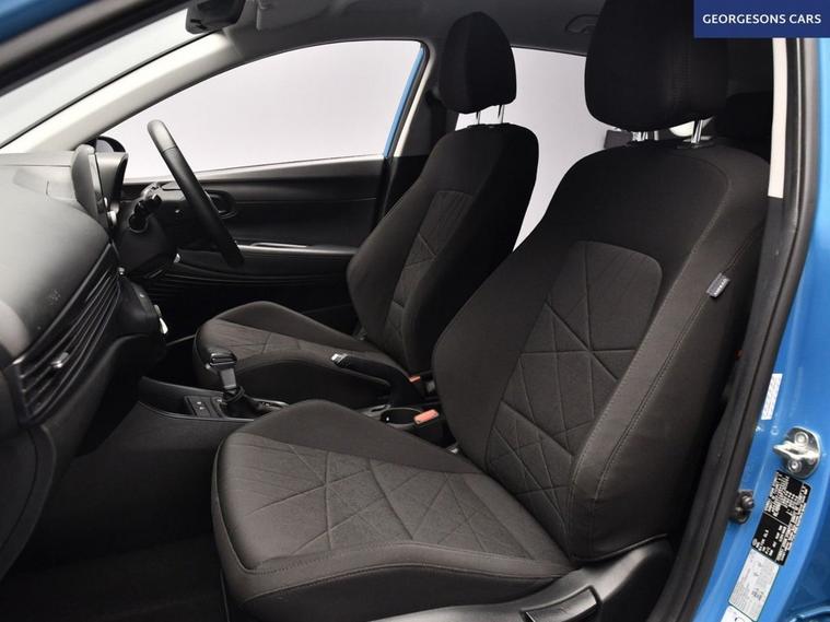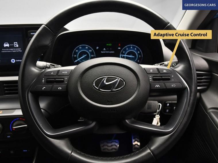 This Hyundai Bayon 1.0 T-GDi MHEV SE Connect combines a responsive 1.0-litre turbo petrol mild-hybrid engine with 100hp, delivering 0-62mph in 12.4 seconds and up to 53.3mpg in this front-wheel-drive setup with a smooth 7-speed DCT automatic transmission. The SE Connect trim offers practical style with 16-inch alloy wheels, modern interior touches, and a compact SUV stance for effortless urban driving. With one owner and three services, this Bayon is in excellent condition. Ambient lighting creates a sophisticated interior atmosphere, while integrated satellite navigation, Apple CarPlay, Bluetooth, and DAB radio ensure seamless connectivity on every journey. Parking is a breeze thanks to the reverse camera and parking sensors, providing clear visibility and confidence in tight spaces. Stay comfortable with air conditioning, offering personalized cooling year-round. Adaptive cruise control with speed limiter and lane assist enhance safety and relaxation on highways, while hill assist ensures smooth starts on inclines. Selectable drive modes provide tailored performance, whether for efficiency or dynamic driving, and the push-button start adds daily convenience. The spacious five-door SUV design includes a 411-litre boot for practicality. C
