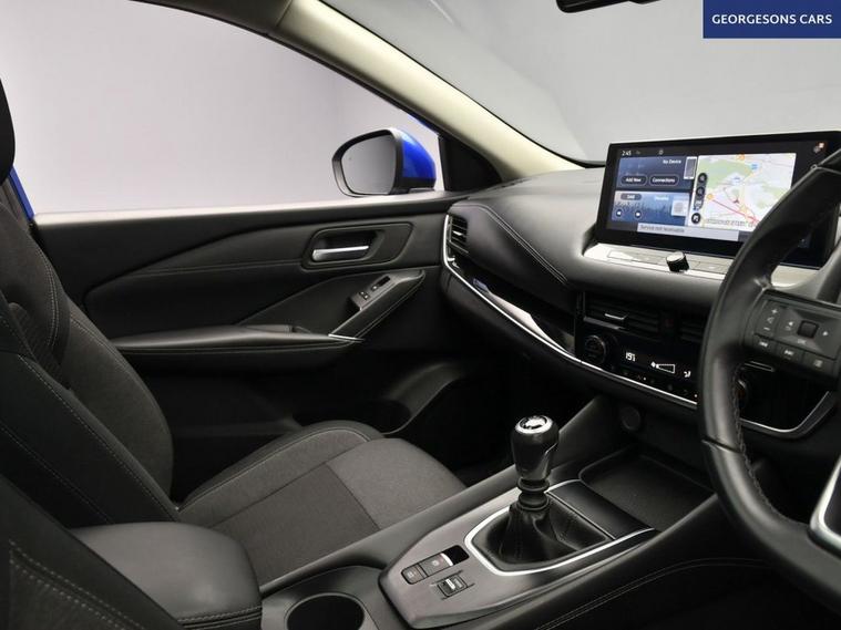 The Nissan Qashqai 1.3 DIG-T MHEV N-Connecta combines a responsive 1.3-litre turbo petrol mild-hybrid engine with 158hp, delivering 0-62mph in 9.2 seconds and up to 48.7mpg in this front-wheel-drive setup with a precise 6-speed manual transmission. The N-Connecta trim offers premium family versatility with a spacious interior for versatile SUV motoring. With one owner and four services, this Qashqai is in excellent condition. Enjoy the expansive panoramic roof for an airy cabin feel, while integrated satellite navigation, Apple CarPlay, Bluetooth, and DAB radio ensure seamless connectivity on every journey. Parking is a breeze thanks to the 360-degree camera, reverse camera, and parking sensors, providing comprehensive visibility and confidence in tight spaces. Stay comfortable with dual-zone climate control, offering personalized cooling year-round. Adaptive cruise control with speed limiter and lane assist enhance safety and relaxation on highways, while hill assist ensures smooth starts on inclines. Selectable drive modes provide tailored performance, whether for efficiency or dynamic driving, and the push-button start adds daily convenience. The spacious five-door SUV design includes a 504-litre boot for practicality.