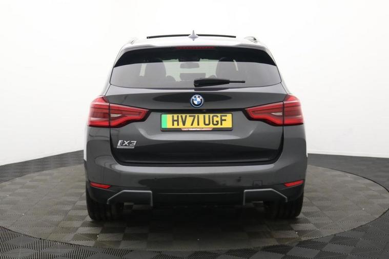 Henson Car Store presents the BMW IX3 80kWh Premier Edition Pro SUV 5dr Electric Auto (286 ps) finished in Grey, this car comes with service history and is VAT qualifying. This 2021 BMW iX3 Premier Edition Pro is a superb example, having had only one owner since new. As a fully electric vehicle, it offers a compelling blend of performance and sustainability. This particular model boasts an 80 kWh battery, providing an impressive maximum range of 279 miles when new, ensuring you can travel further on a single charge. Charging is convenient, with a full charge at home using a 7kW charger taking approximately 11 hours and 20 minutes, while rapid public charging can replenish the battery from empty to 80% in as little as 32 minutes. The Premier Edition Pro trim level comes equipped with a host of desirable features designed to enhance your driving experience. These include a Reversing Assist Camera and Park Distance Control for effortless manoeuvring, alongside front and rear parking sensors. Inside, youll find Seat Adjustment for the front electric seats with driver memory, ensuring personalised comfort. Enjoy the open air with the Panoramic Glass Sunroof, and stay connected and powered up with Enhanced Bluetooth and Wireless Charging. Furthermore, the iX3 offers a large boot space, making it a practical choice for families and those who need ample storage.