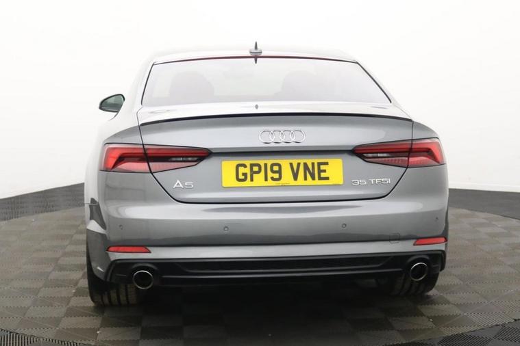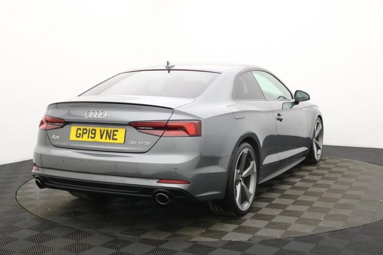 Henson Car Store presents the AUDI A5 2.0 TFSI 35 Black Edition Coupe 2dr Petrol S Tronic Euro 6 (s/s) finished in Monsoon Grey, this car comes with service history. This 2019 Audi A5 TFSI Black Edition offers a superb blend of style and efficiency, making it a standout choice. Powered by a 2.0 litre petrol engine and meeting Euro 6 emissions standards, this model is equipped with a Bluetooth interface for seamless connectivity, deluxe 3 zone electronic climate control for personalised comfort, and striking LED headlights with dynamic rear indicators. Further enhancing your driving experience are the light and rain sensors for automatic headlight activation and heated front seats, ensuring comfort in all conditions. This Audi A5 Black Edition is designed to impress with its economical performance, achieving a notable 40 miles per gallon. Its low CO2 emissions and low insurance group rating indicate that it is a more cost effective option compared to similar vehicles. These highlights demonstrate a commitment to both efficiency and affordability, providing a superior ownership proposition.