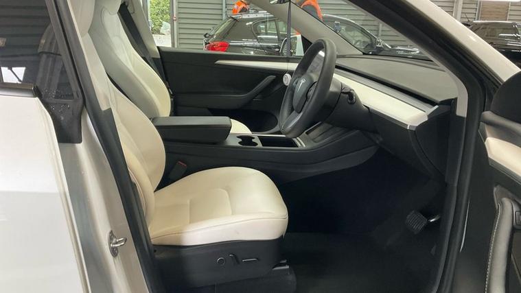 **WHITE LEATHER** **INDUCTION ALLOYS** This 2022 Tesla Model Y Long Range is a superb example, having had only one owner since new. As an electric vehicle, it offers a smooth and quiet driving experience, with its Four Wheel Drive system providing excellent traction. The Long Range variant boasts an impressive 85 kWh battery, capable of delivering a maximum range of 331 miles when new. Charging at home with a 7kW charger takes approximately 12 hours for a full charge, while rapid public charging can take you from empty to 80% in as little as 25 minutes. This Model Y also features a generous boot space, making it practical for everyday use and longer journeys. The highlights of this Tesla Model Y Long Range truly set it apart. Its acceleration is particularly noteworthy, achieving 0-60mph in a swift 4.8 seconds, demonstrating its dynamic performance. The substantial 331 mile maximum range at new means you can travel further between charges, offering convenience and peace of mind. These features, combined with its electric powertrain and the benefits of single ownership, position this Model Y as an exceptional choice for those seeking advanced technology and impressive capability.