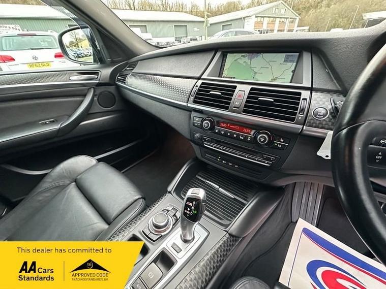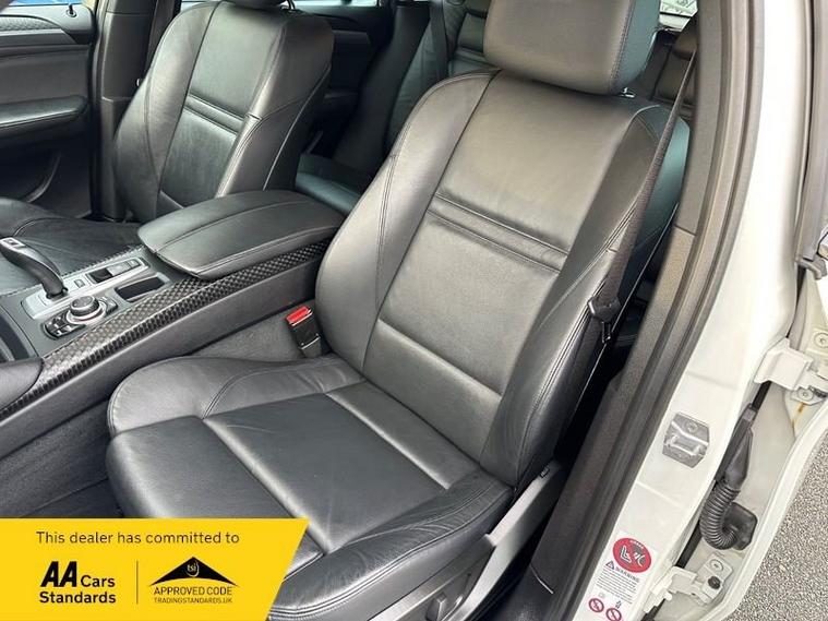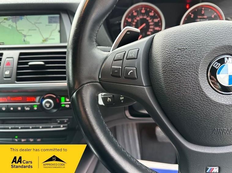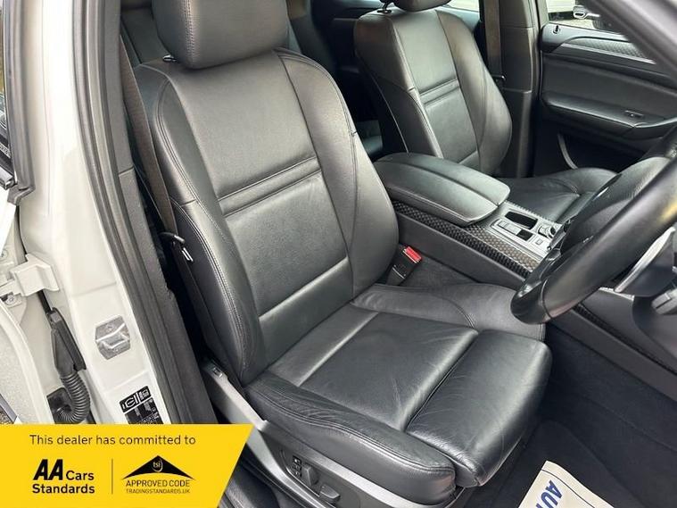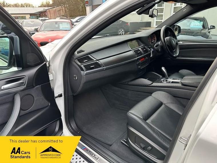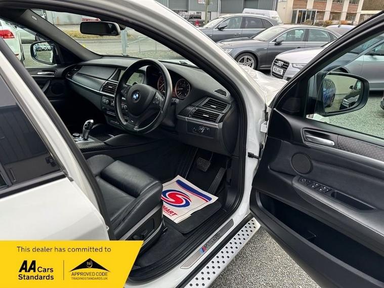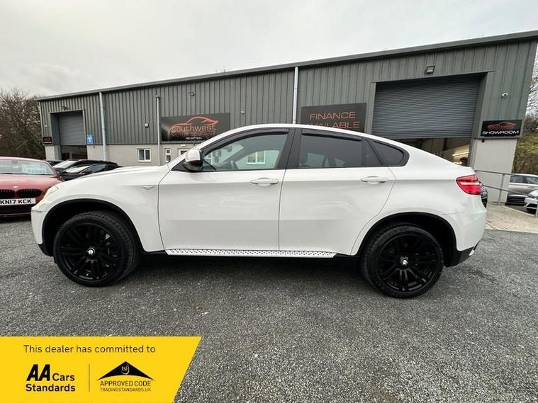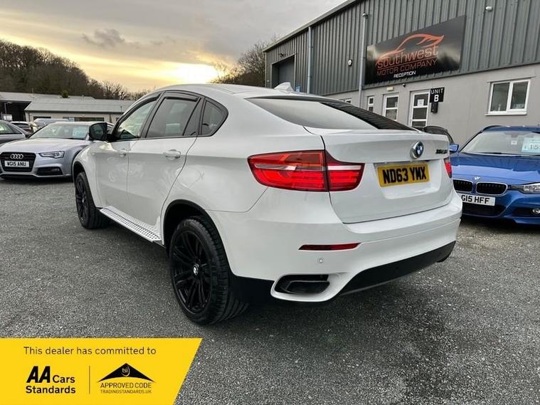 There is no denying this 2014 BMW X6 M50d X-Drive has a real presence. Finished in Alpine white with contrasting gloss black wheels/trim and Nevada black leather it looks fantastic. Incredibly well kept throughout, its clear this vehicle has been exceptionally well cared for. This particular example has a huge specification including DAB radio, Bluetooth phone, multimedia connectivity, Satellite navigation, cruise, heated and electric seats, electric tailgate, reversing camera, parking sensors, automatic Bi-Xenon lights with angel eye day time running lights, automatic wipers, electric and folding mirrors, automatic dual-zone climate control and 20-inch alloy wheels which ensure it is a fantastic and comfortable vehicle to drive and travel in. The M50d 3.0L diesel engine packs one almighty punch. With 375BHP and huge torque on tap, this X6 flies! Together with the confident chassis and BMWs X-drive drivetrain, this is a vehicle that would put many hot hatches to shame......... yet still able to return 40MPG. Quiet, spacious, powerful and with a fantastic presence...... We think this is one not to be missed! Supplied fully serviced with a long MOT and 3 months warranty 9extendable if desired). Part-exchange welcome. All our vehicles are HPI clear. All major debit/credit cards are accepted. To view all of our current stock please click on dealer's website For more information or to arrange a viewing please call 01822462163 and we will be happy to help. Great finance packages are available to suit all customer profiles The vehicle specification displayed may not be exact for this vehicle. Please contact us to confirm the precise specifications.