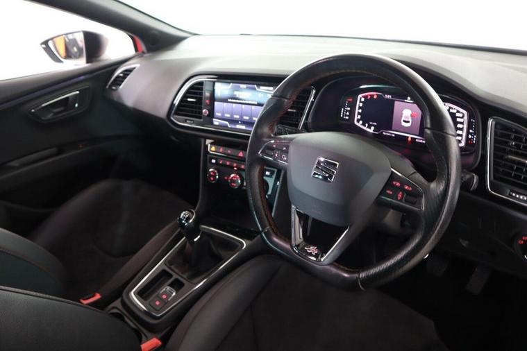 This 2019 SEAT Leon TSI EVO FR Black Edition offers a compelling blend of style and practicality. Powered by a 1.5 litre Euro 6 compliant petrol engine, this FR Black Edition variant is equipped with the Media System Plus featuring Bluetooth connectivity, allowing for seamless integration of your devices. Navigating tight spaces is made effortless thanks to the front and rear parking sensors, further enhanced by parking assistance systems. The Full LED headlights provide excellent visibility, while the Winter Pack ensures comfort with heated seats, complemented by dual zone climate control for personalised cabin temperatures. Experience impressive performance with an acceleration of 0 to 62 miles per hour in just 8.2 seconds, demonstrating its dynamic capability. This SEAT Leon also boasts low CO2 emissions, indicating its efficiency and environmental consideration compared to similar vehicles. Furthermore, the generous boot space provides ample room for luggage or shopping, making it a versatile choice for everyday use and longer journeys.