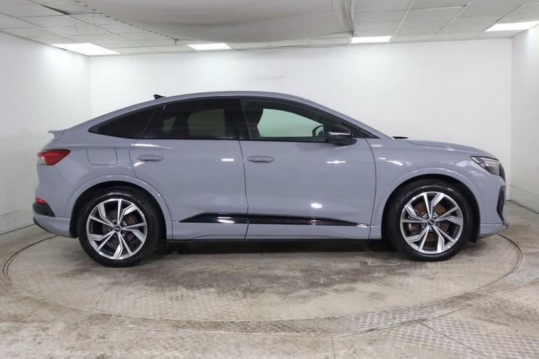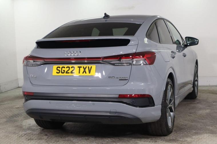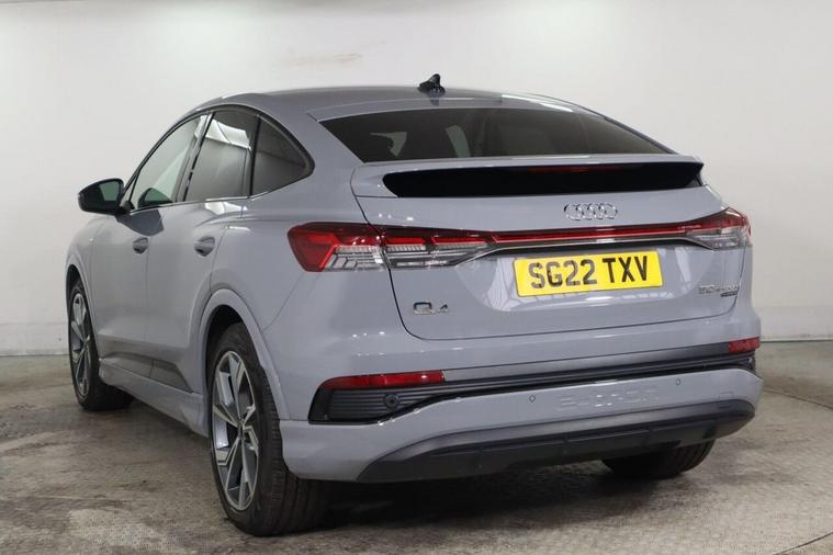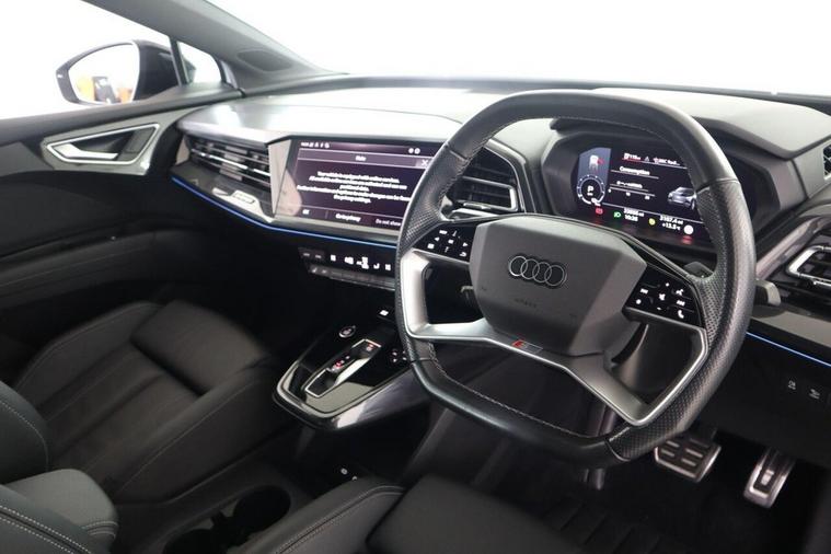 This 2022 Audi Q4 e-tron Edition 1 offers an impressive electric driving experience with its Four Wheel Drive system. As an electric vehicle, it boasts a substantial 82 kWh battery, providing a maximum range of 308 miles when new. This model comes equipped with a Bluetooth interface, 3-Zone Electronic Climate Control, and a Comfort Auxiliary Air Conditioning system to ensure a pleasant cabin environment. For added convenience, it features memory functions for the driver's seat and exterior mirrors, alongside heated front seats. The Audi Q4 e-tron Edition 1 stands out with its remarkable performance, achieving 0-62mph in just 6.2 seconds, demonstrating its dynamic capability. Its electric powertrain offers a full charging time of 11 hours 30 minutes at home using a 7kW charger, and a rapid 38 minutes for an empty to 80% charge at a public charging station. Furthermore, this vehicle provides ample storage with its large boot space, making it a practical choice for everyday use and longer journeys.