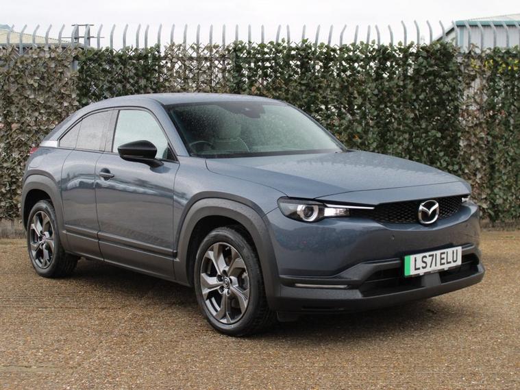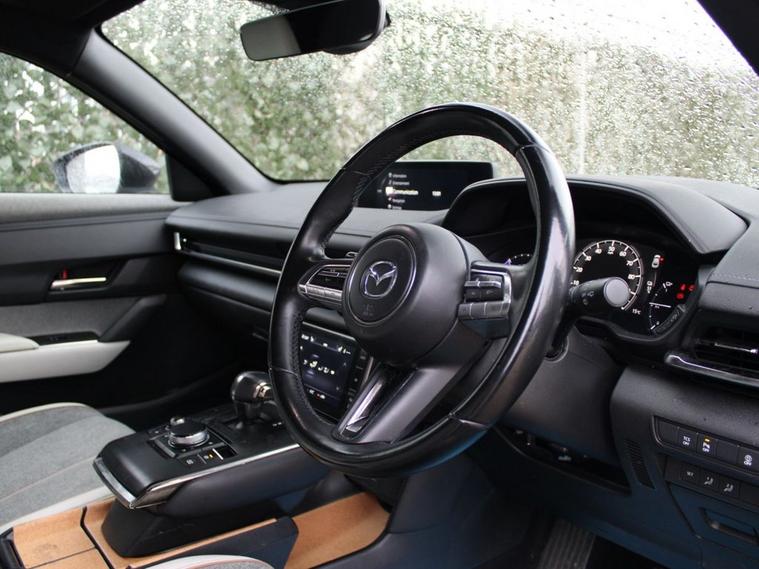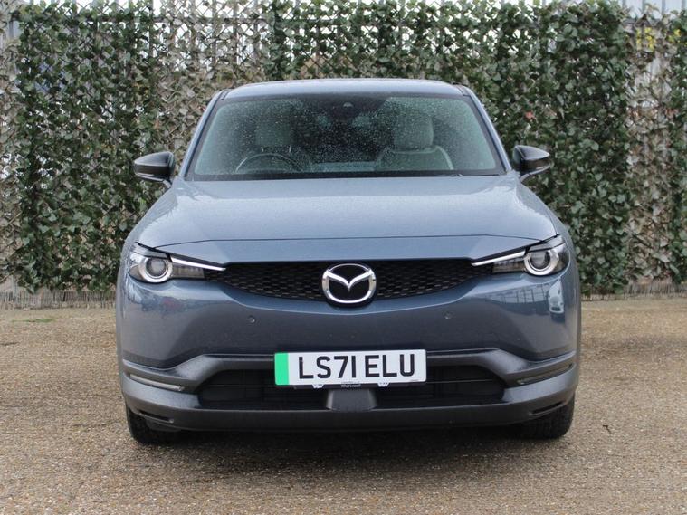 **92.0% BATTERY HEALTH** This 2021 Mazda MX-30 Sport Lux is a fantastic example, having been owned by only one person since new. This electric vehicle boasts a 36 kWh battery, offering a maximum range of 124 miles when fully charged. Recharging at home with a 7kW charger takes approximately 5 hours, while rapid public charging can take you from empty to 80% in just 48 minutes. The Sport Lux trim comes equipped with a range of desirable features designed to enhance your driving experience. Youll appreciate the convenience of Smart Keyless Entry, LED headlights for clear visibility, and Climate Control for perfect cabin temperature. Safety is also a priority, with Emergency Lane Keeping and Blind Spot Assist providing an extra layer of security. The innovative Window Projection Colour Active Driving Display with Traffic Sign Recognition offers a clear view of essential information without taking your eyes off the road.