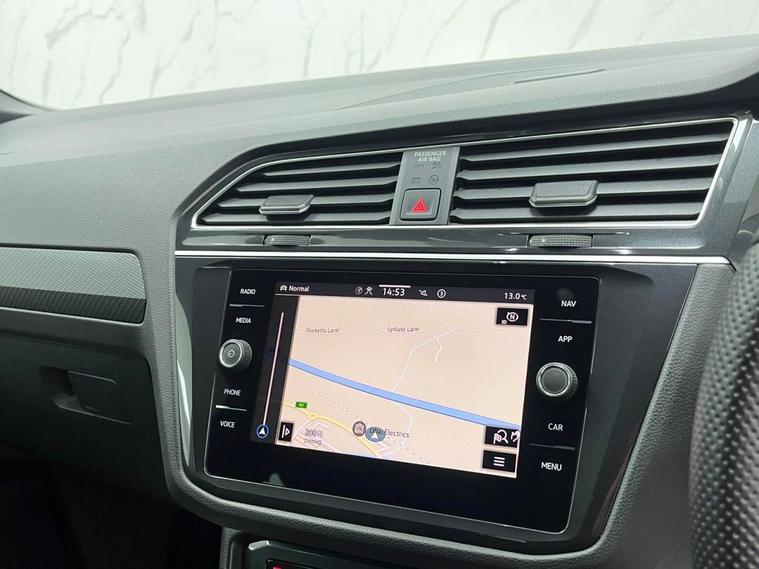 This 2020 Volkswagen Tiguan TSI R-Line boasts a full service history and has had only one owner, ensuring excellent provenance. This Euro 6 compliant model features a responsive 1.5 litre petrol engine and comes with a clear vehicle history check. Inside, youll find the Discover Media Navigation Infotainment System with streaming and internet capabilities, along with Bluetooth connectivity. Keyless entry provides effortless access, while Adaptive Cruise Control with Predictive Cruise Control enhances your driving experience. Parking is made simple with front and rear parking sensors, and the 3Zone Electronic Air Conditioning ensures comfort for all occupants. The Tiguan R-Line offers a compelling blend of performance and practicality. Its acceleration from 0-60mph in just 9.2 seconds demonstrates its dynamic capability, setting it apart from many similar vehicles. Furthermore, the generous boot space provides ample room for luggage or shopping, making it an ideal choice for families or those who require extra carrying capacity. This combination of features and performance makes this Tiguan a well rounded and desirable vehicle.